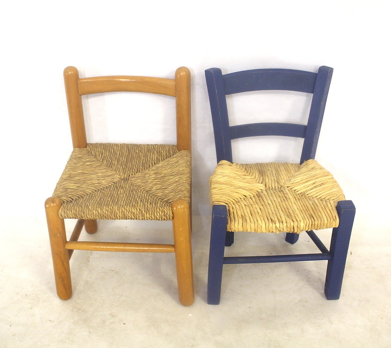 988117. STOLE; 2 stk, træ med bastsæde, børn.