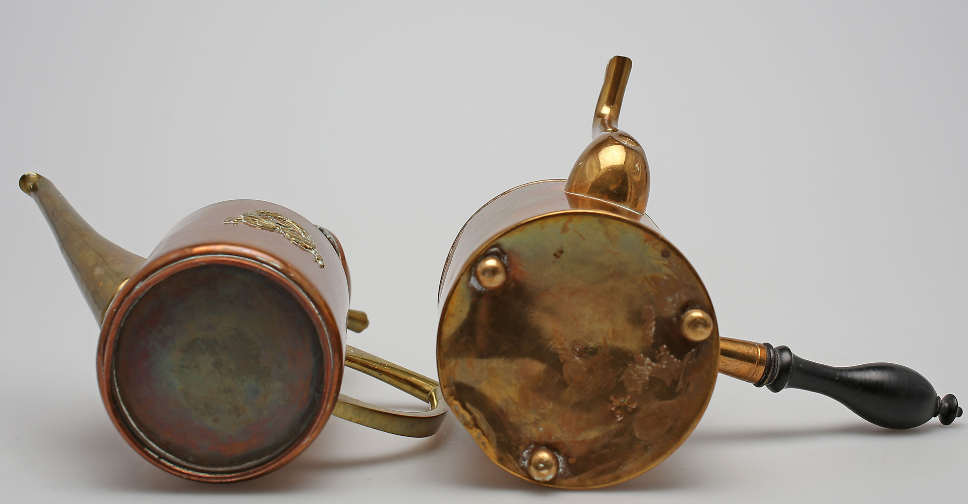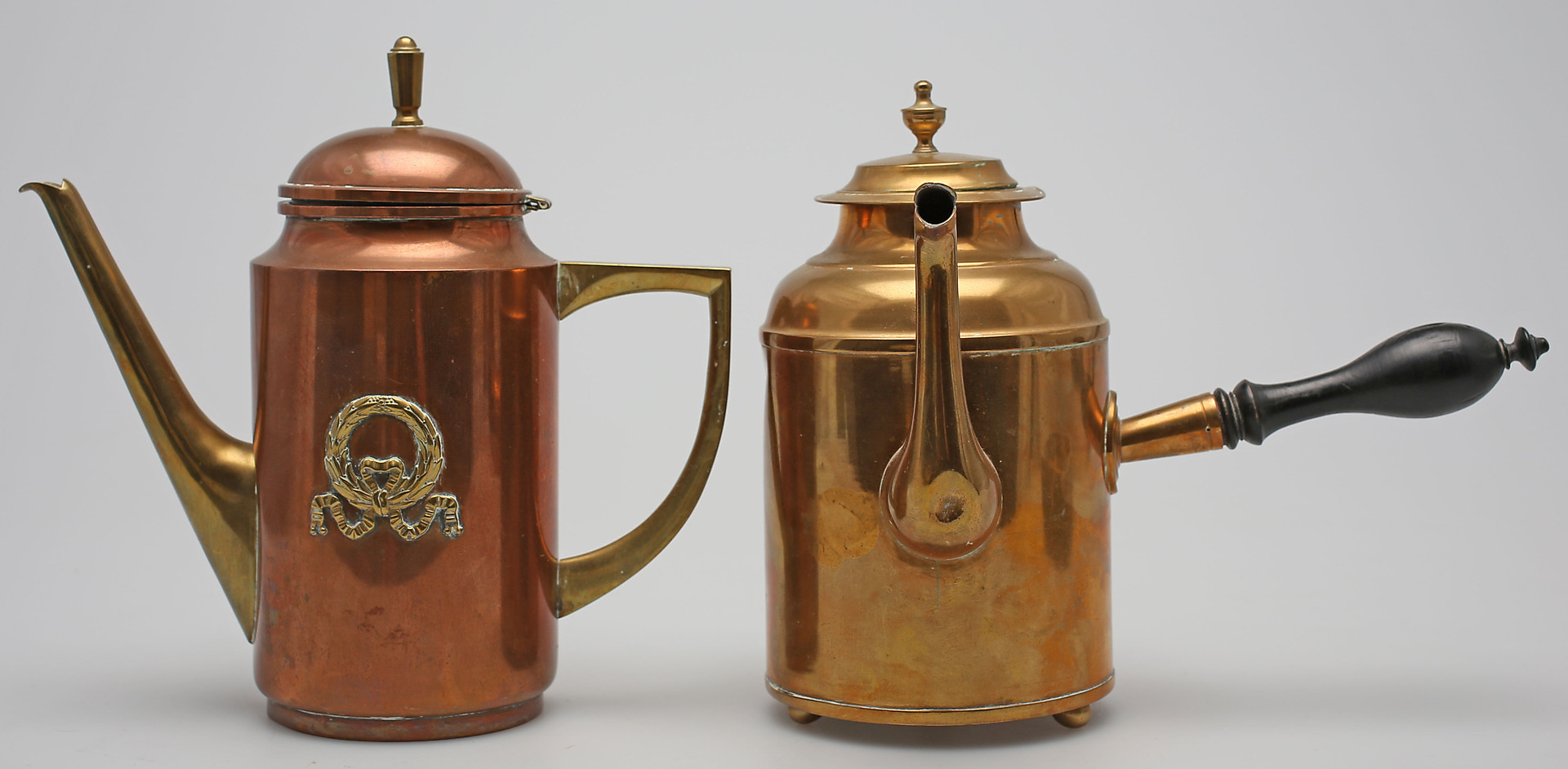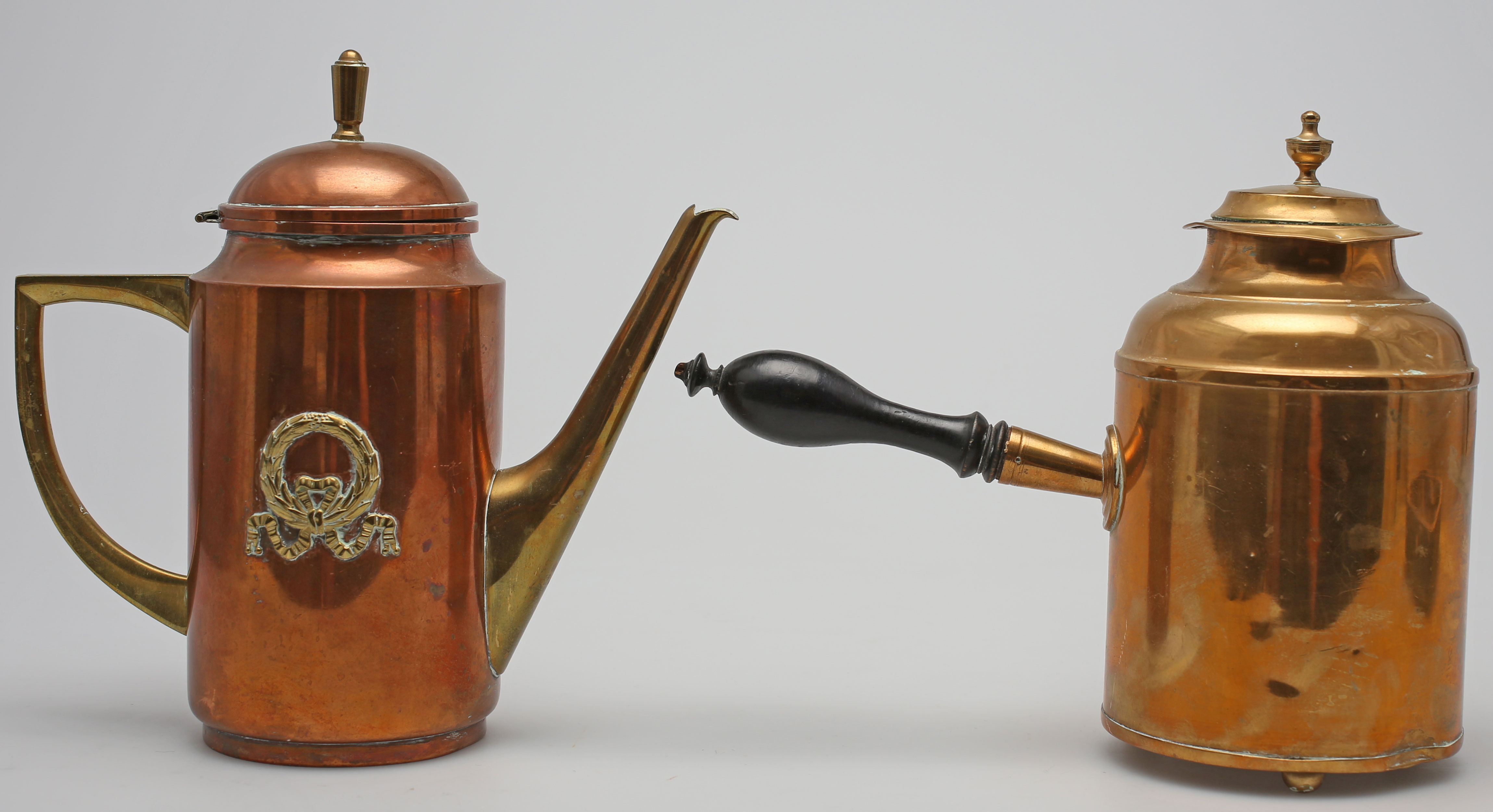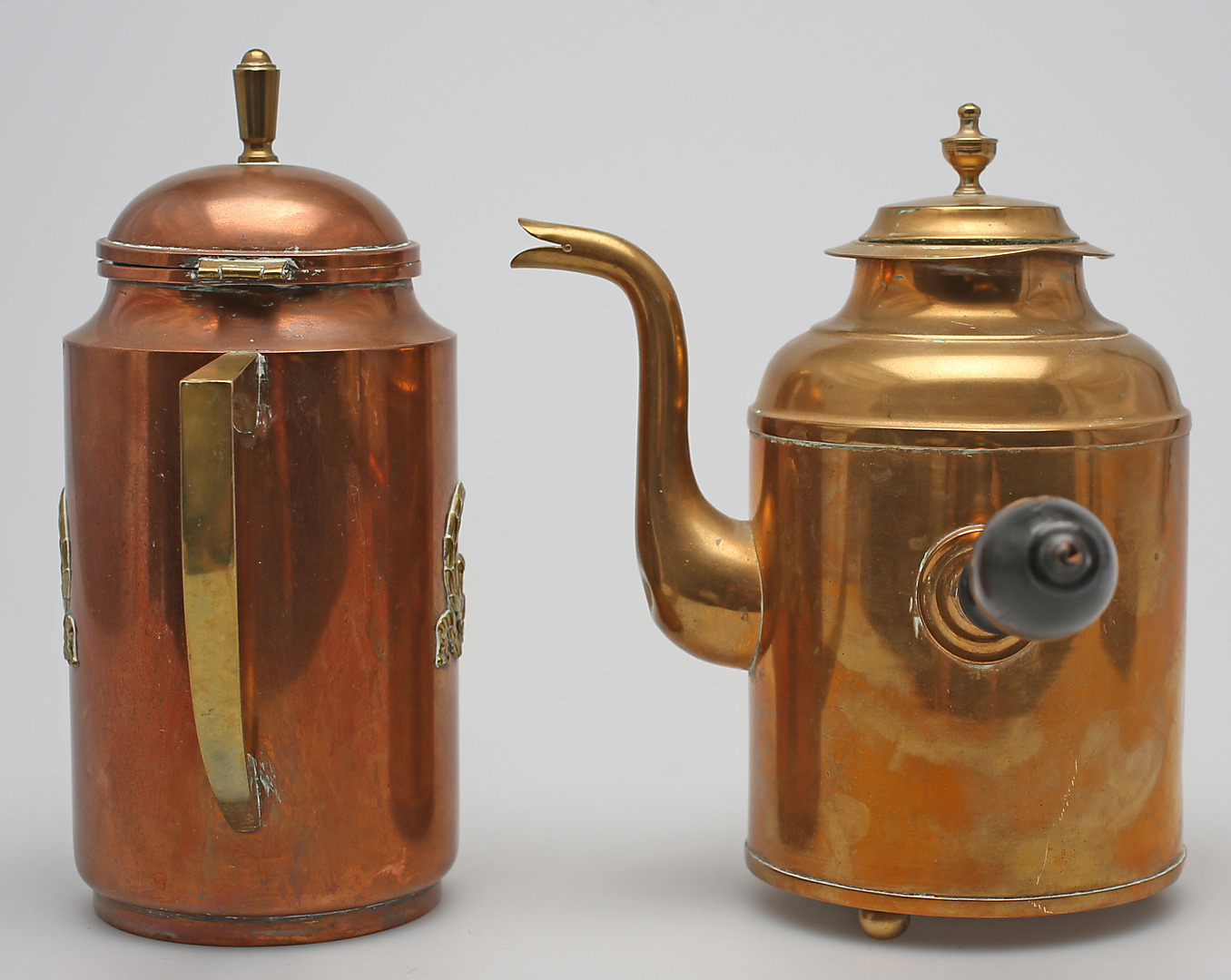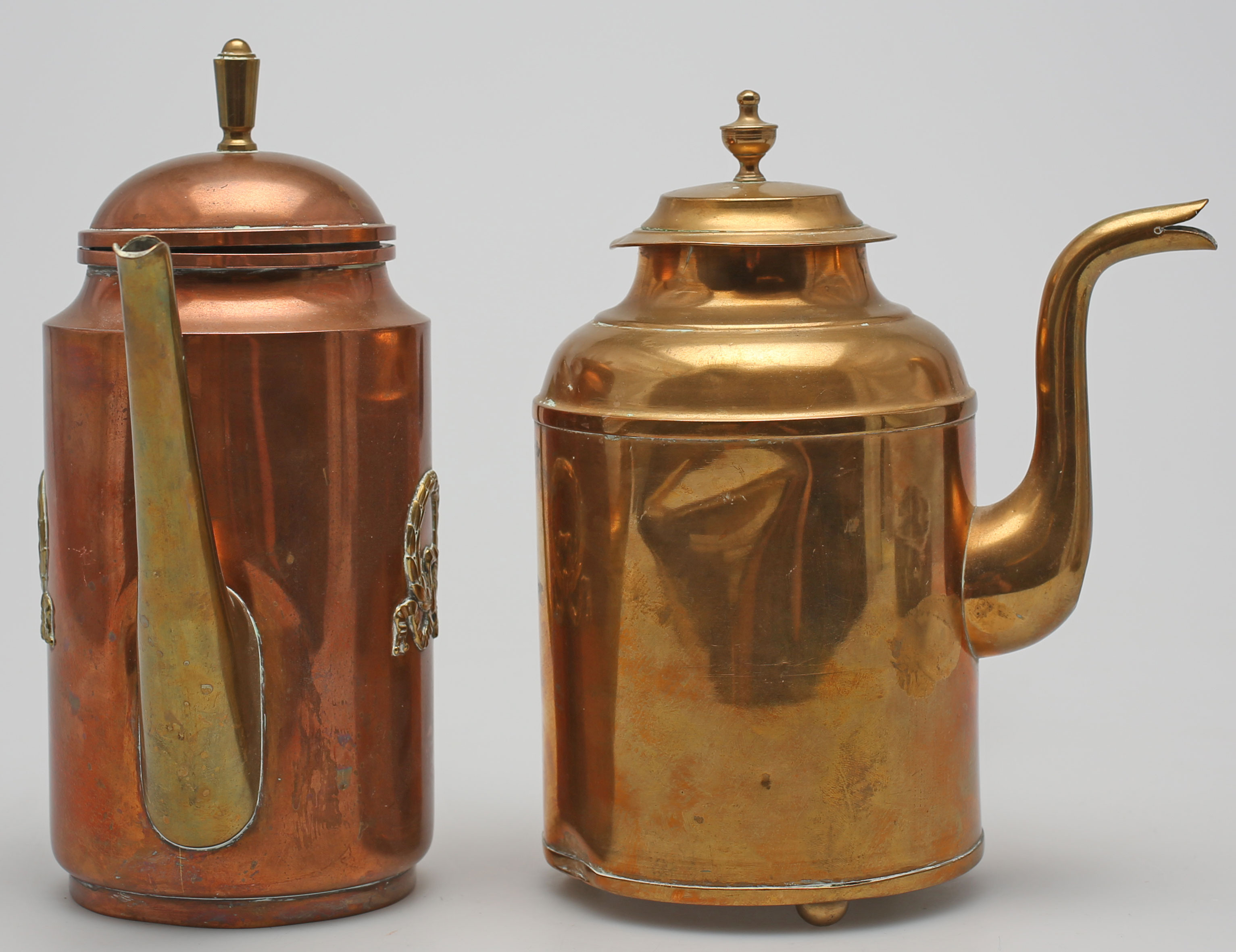 98984. KAFFEKANDER, 2 stk., kobber og messing, 20. århundrede.