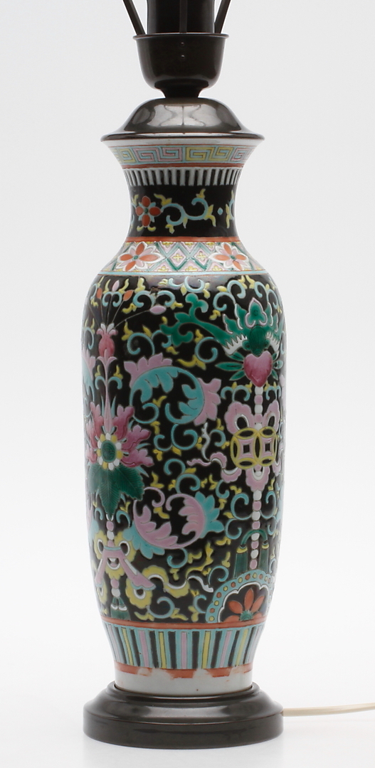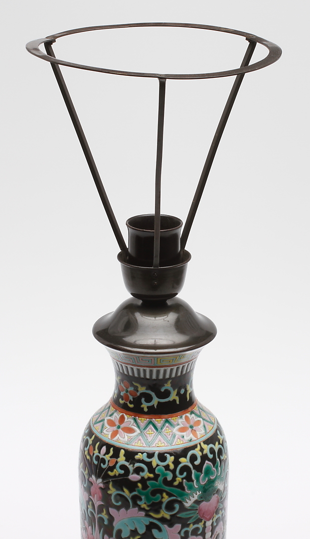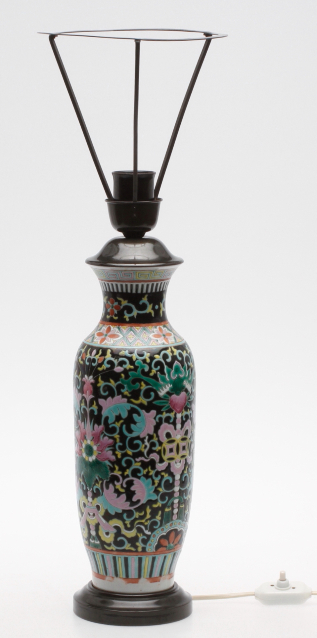 99744. BORDLAMPE, porcelæn, polykrom dekoration, ostindisk.