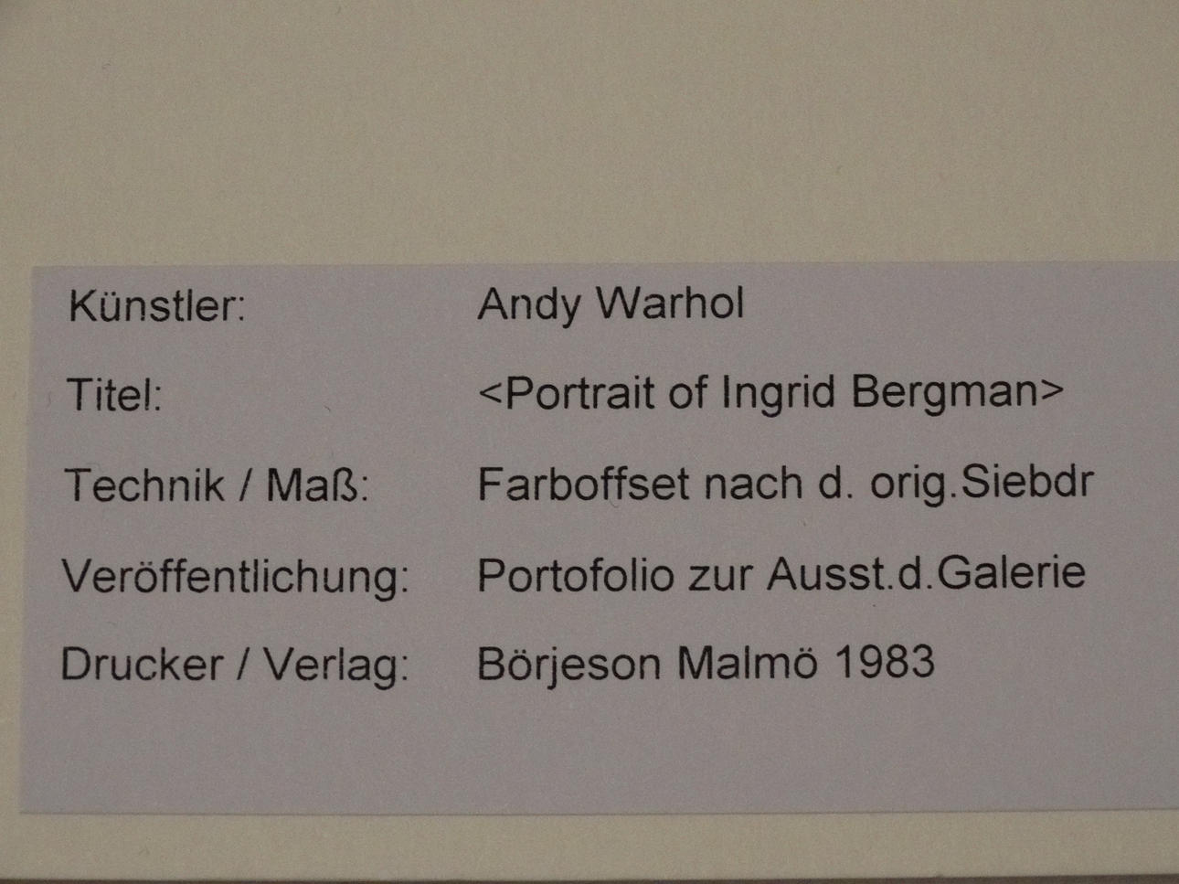 Andy Warhol: Ingrid Bergmann, farveoffset: 20 x 20 cm, mat 40 x 50 cm, Malmø, 1983.