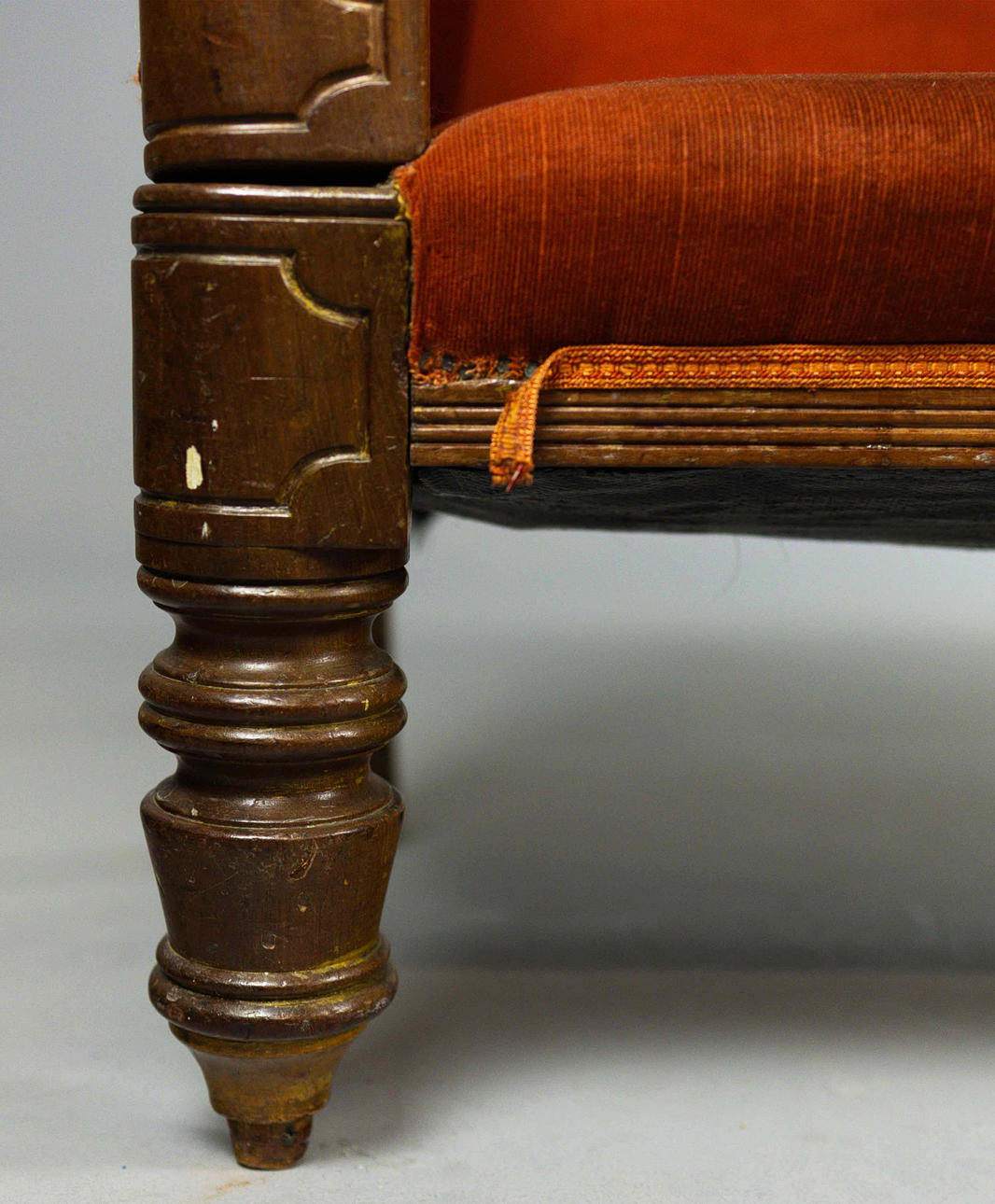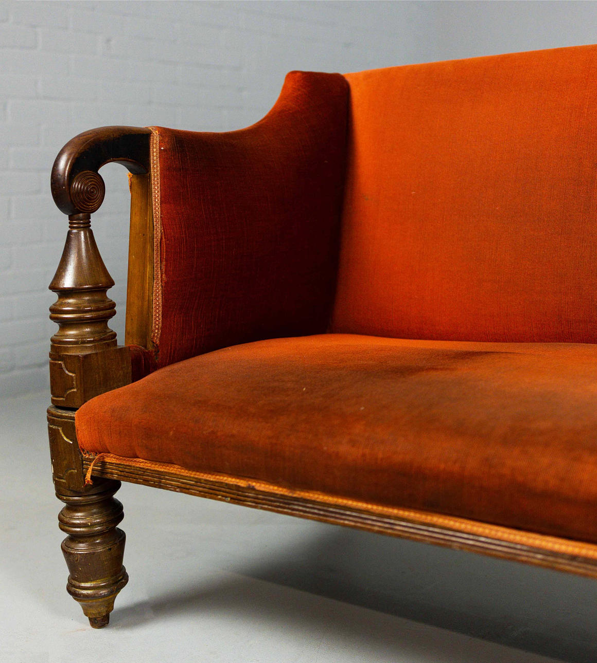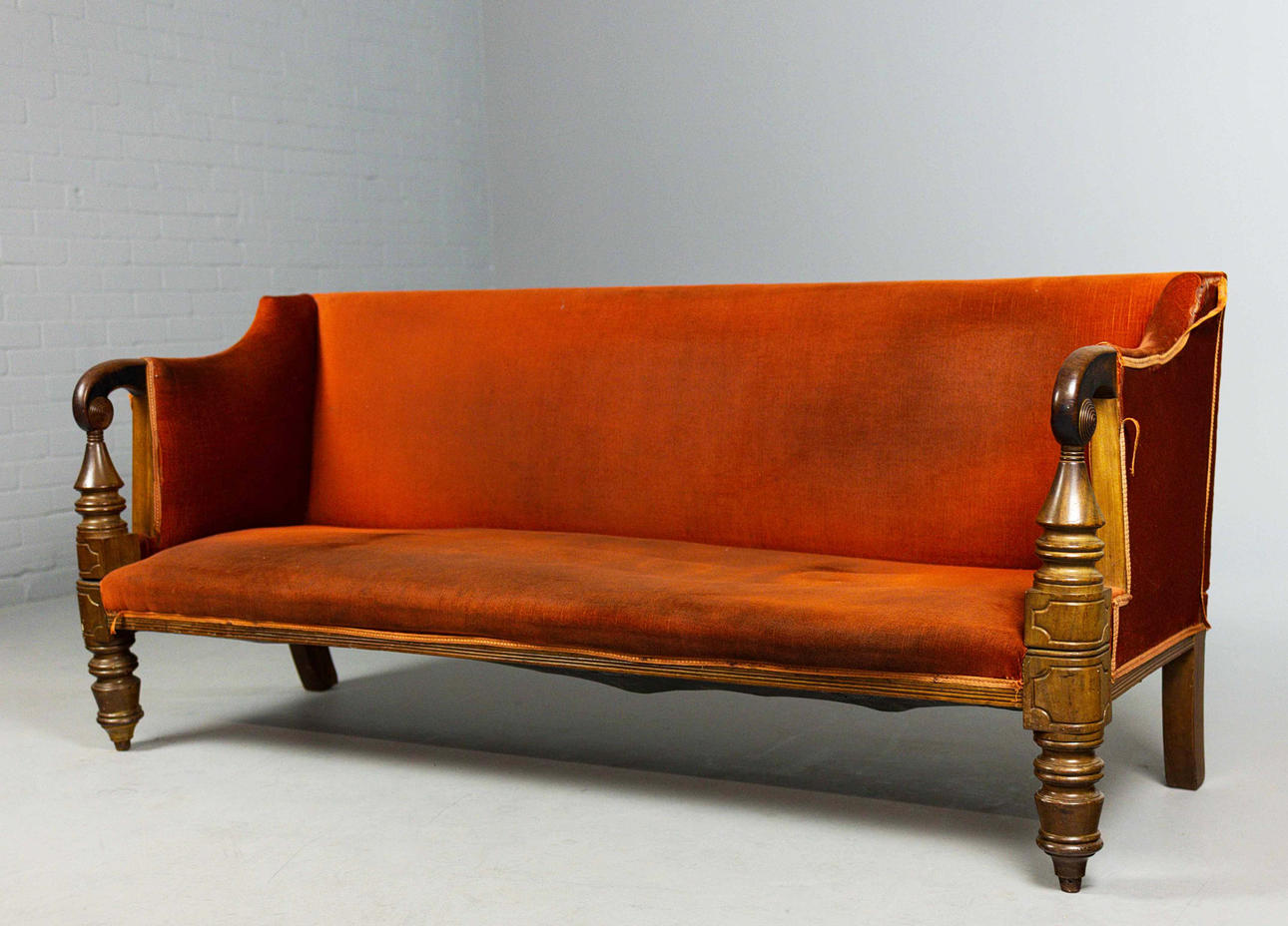 Cirka 1825, med terracotta fløjlbetræk, 79 cm H x 184 cm B x 73 cm D.
