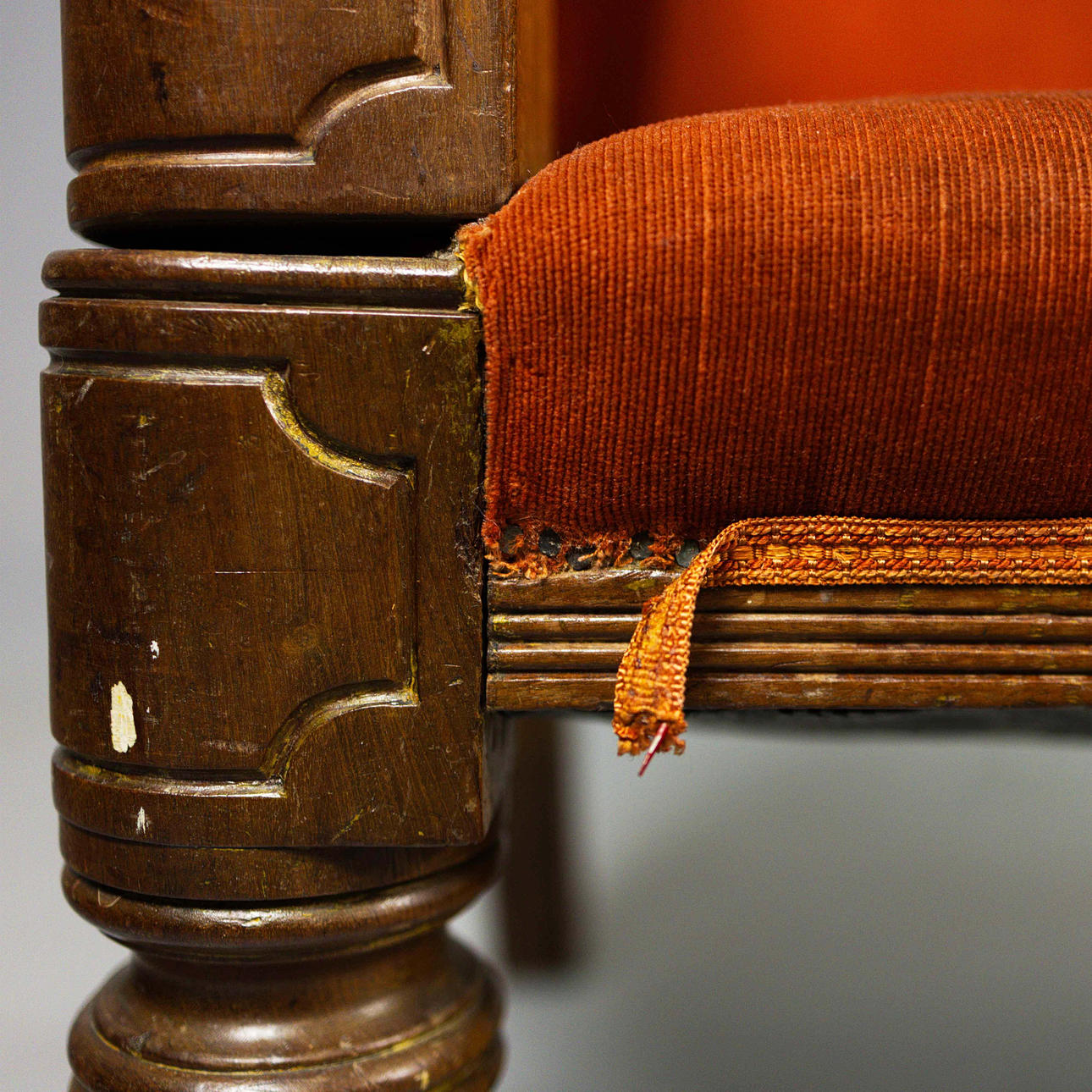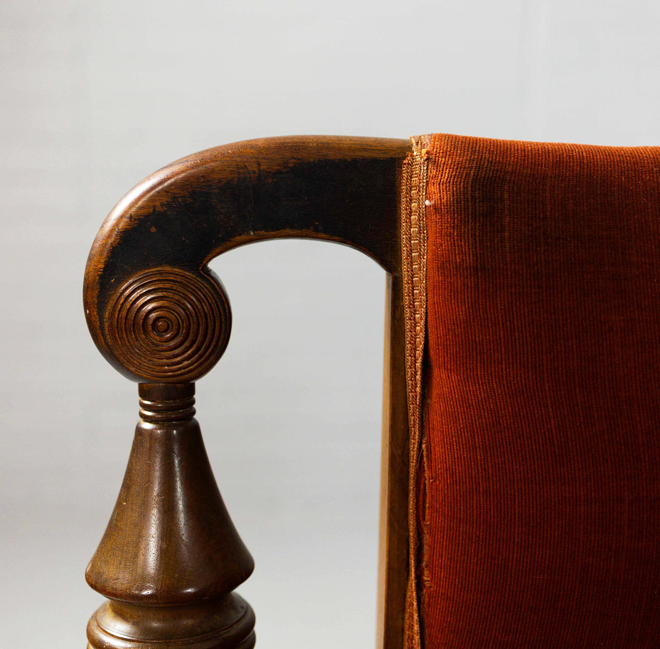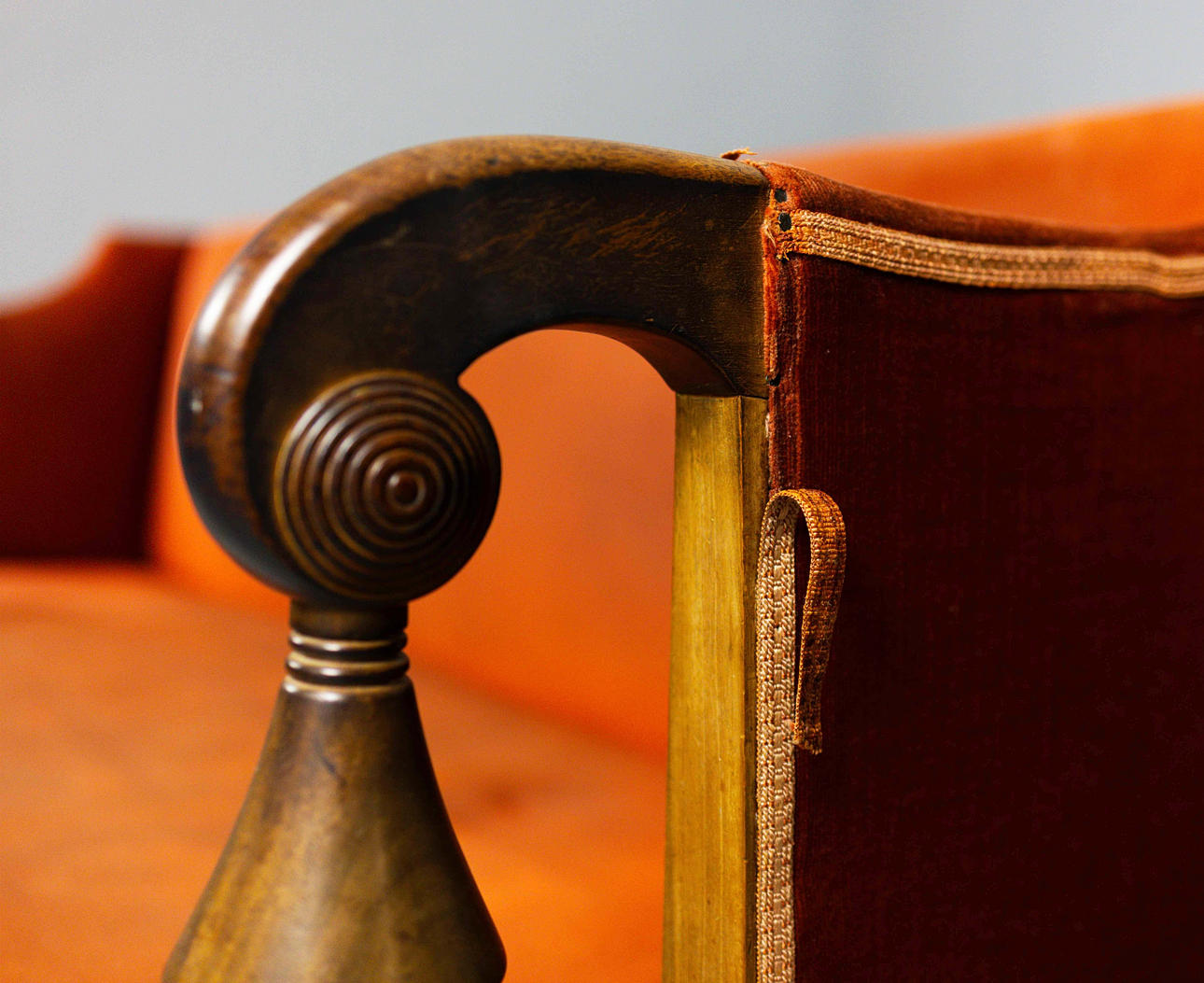Cirka 1825, med terracotta fløjlbetræk, 79 cm H x 184 cm B x 73 cm D.