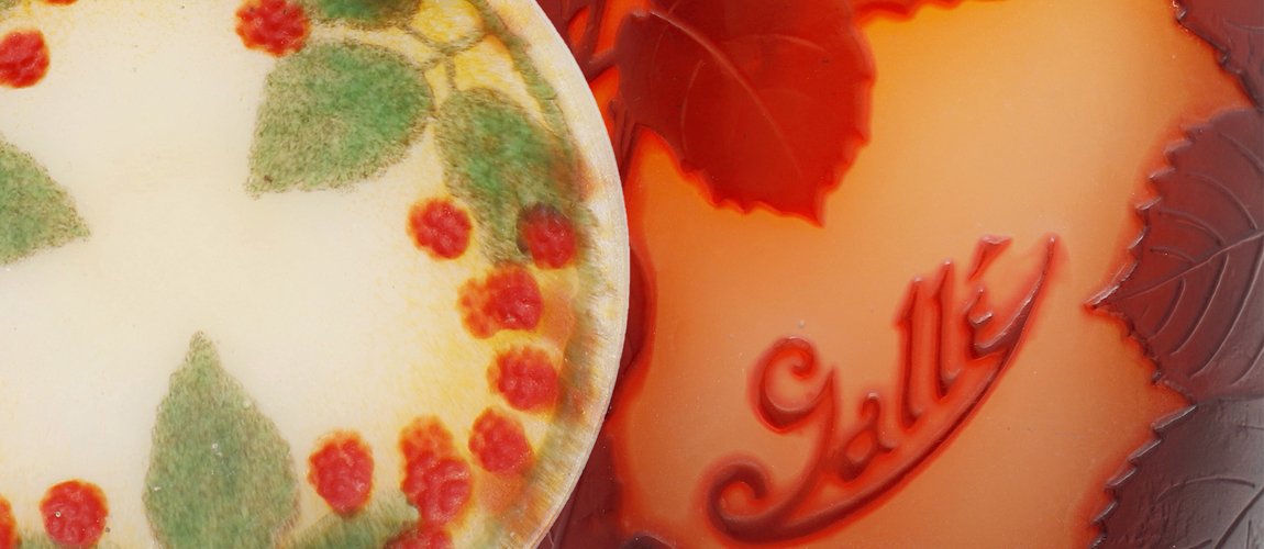 And just then, there was an organic entry into the world of craftsmanship. An innovative return to nature, a glance towards the Orient, and voilà: Art Nouveau! A free, asymmetric emerging style that asserted itself more than anything else in the continent's glass art. And perhaps most of all in Emile Gallé's workshop. With the assistance of Crafoord Auctions in Lund, we now have 37 samples of the glass that, at the turn of the last century, amazed the world. You are warmly invited to examine and appreciate these elegant pieces that, over 100 years ago, reinvigorated the art of glass with their leaves, flowers, plants, butterflies, and everything that nature had to offer to the artists who looked forward in what soon became known as the new art!