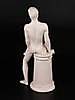 Porzellanfigur "Männliches Aktmodell auf einem Säulenstumpf sitzend" - Goebel, Biskuitporzellan, unterseitig gemarkt,H.ca.28cm.