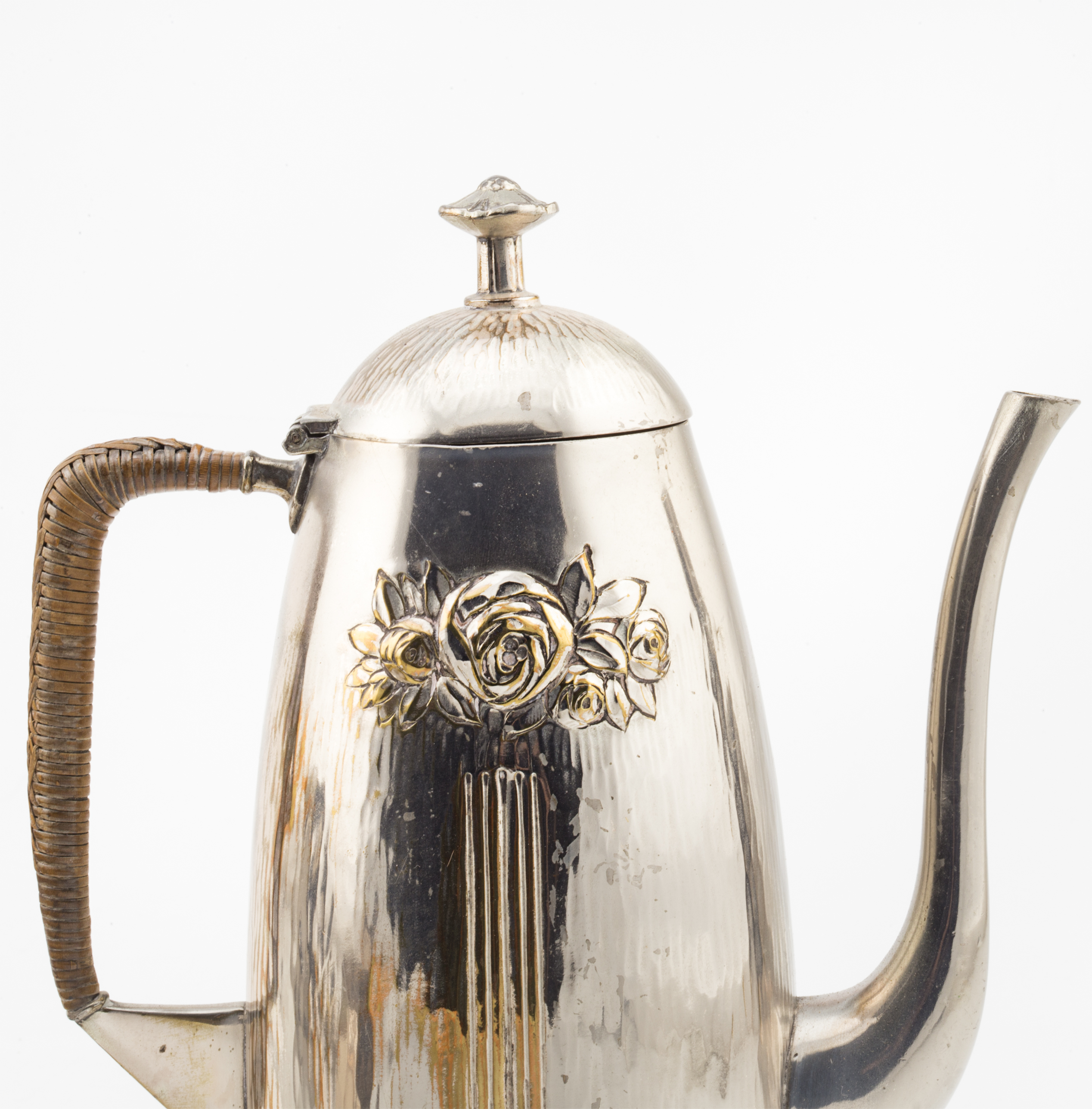 1002092. Jugendstil-Teekanne, Kaffeekanne, Milchkännchen und Zuckerdose aus Silbermetall, Anfang des 20. Jahrhunderts.