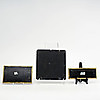 Bemaltes und vergoldetes geschnitztes Holz. 21 x 8, 22 x 13 und 23 x 22 cm.