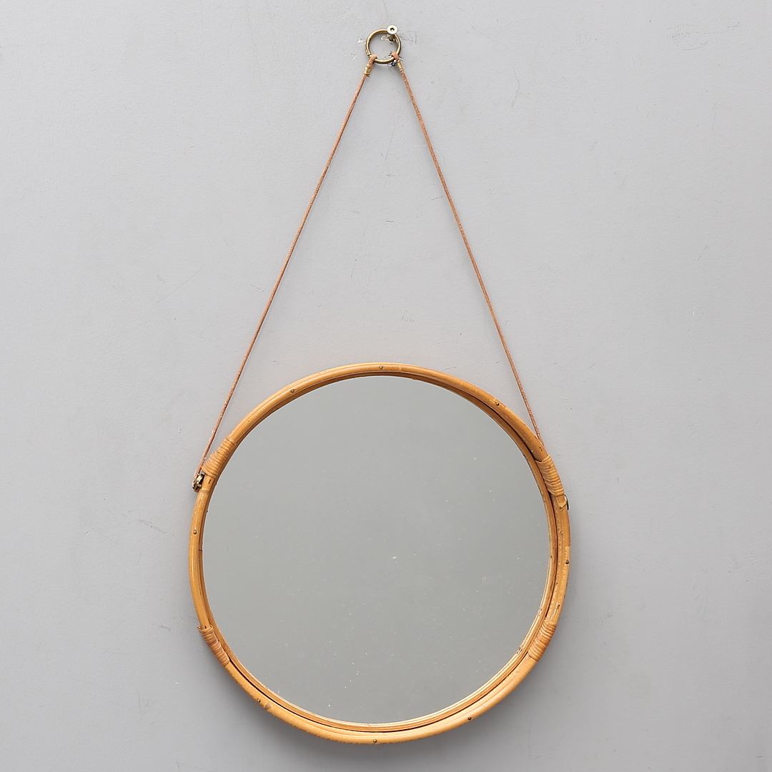 1008142. SPIEGEL, rund, Rattan.
