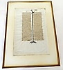 Blatt einer Handschrift aus einer lateinischen Pergamenthandschrift, verziert mit Seitenranken und Blattgold, etwa 29 x 20 cm, gerahmt etwa 30 x 40 cm, Frankreich um 1400.
