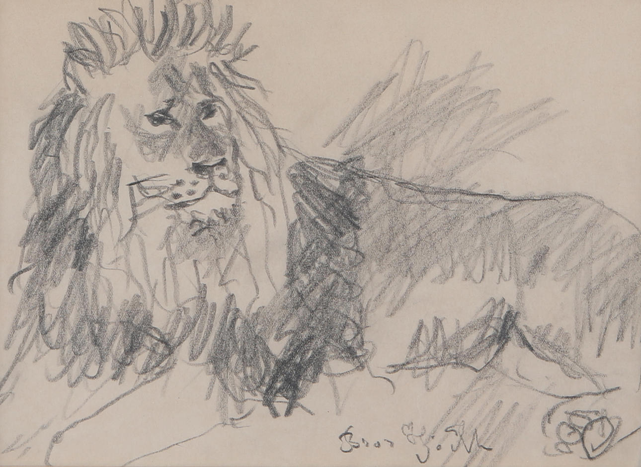 1018463. BROR HJORTH. Löwe, Bleistift, signiert.