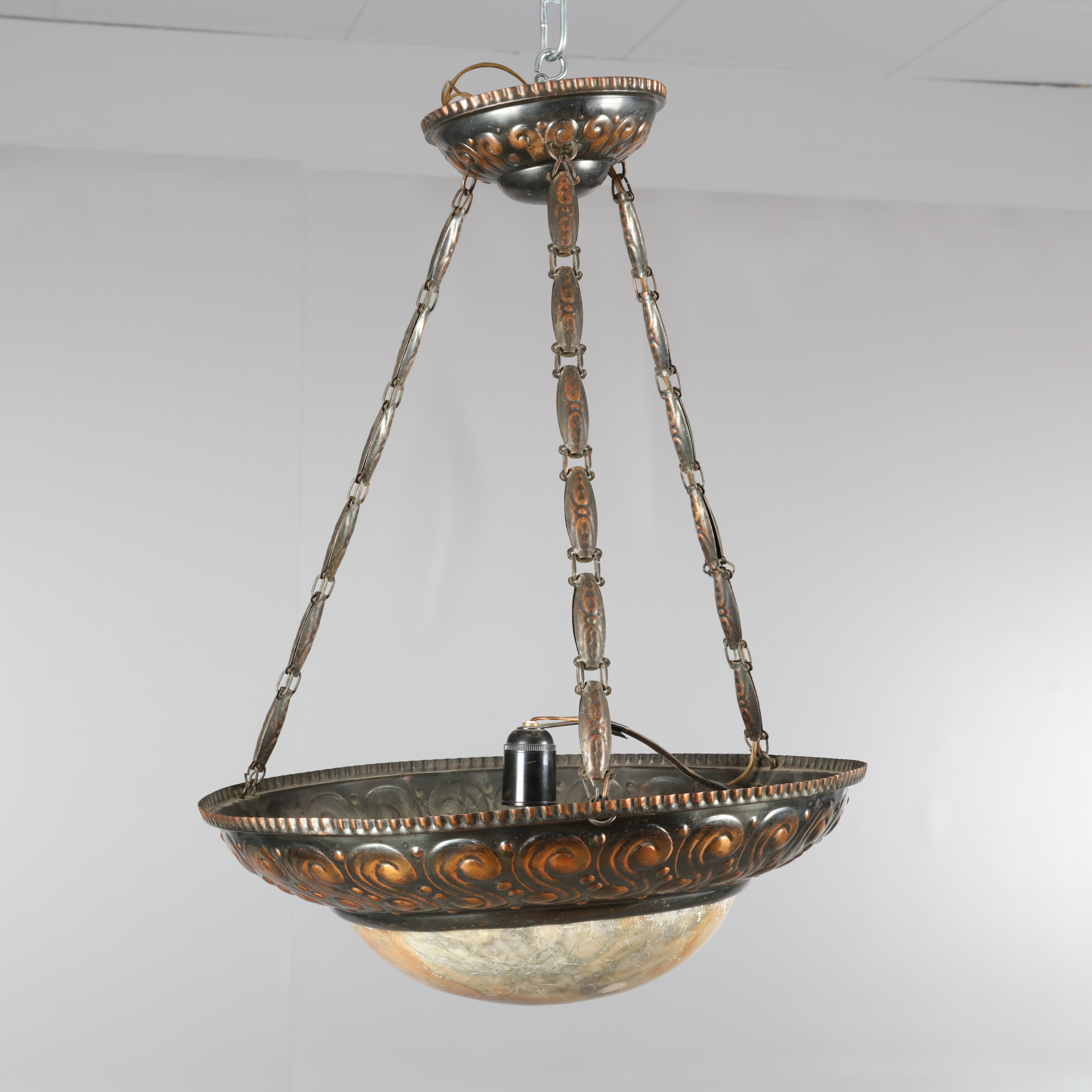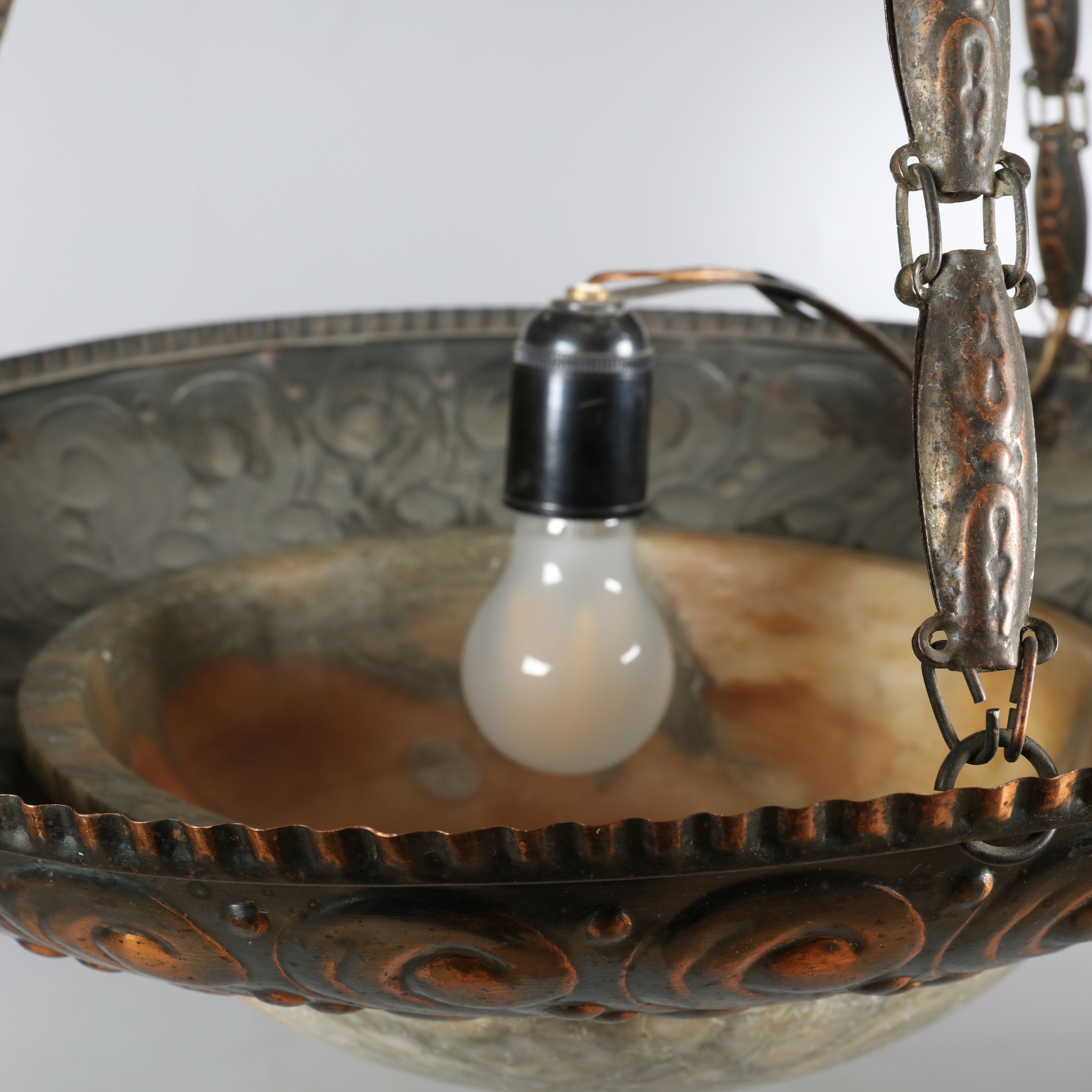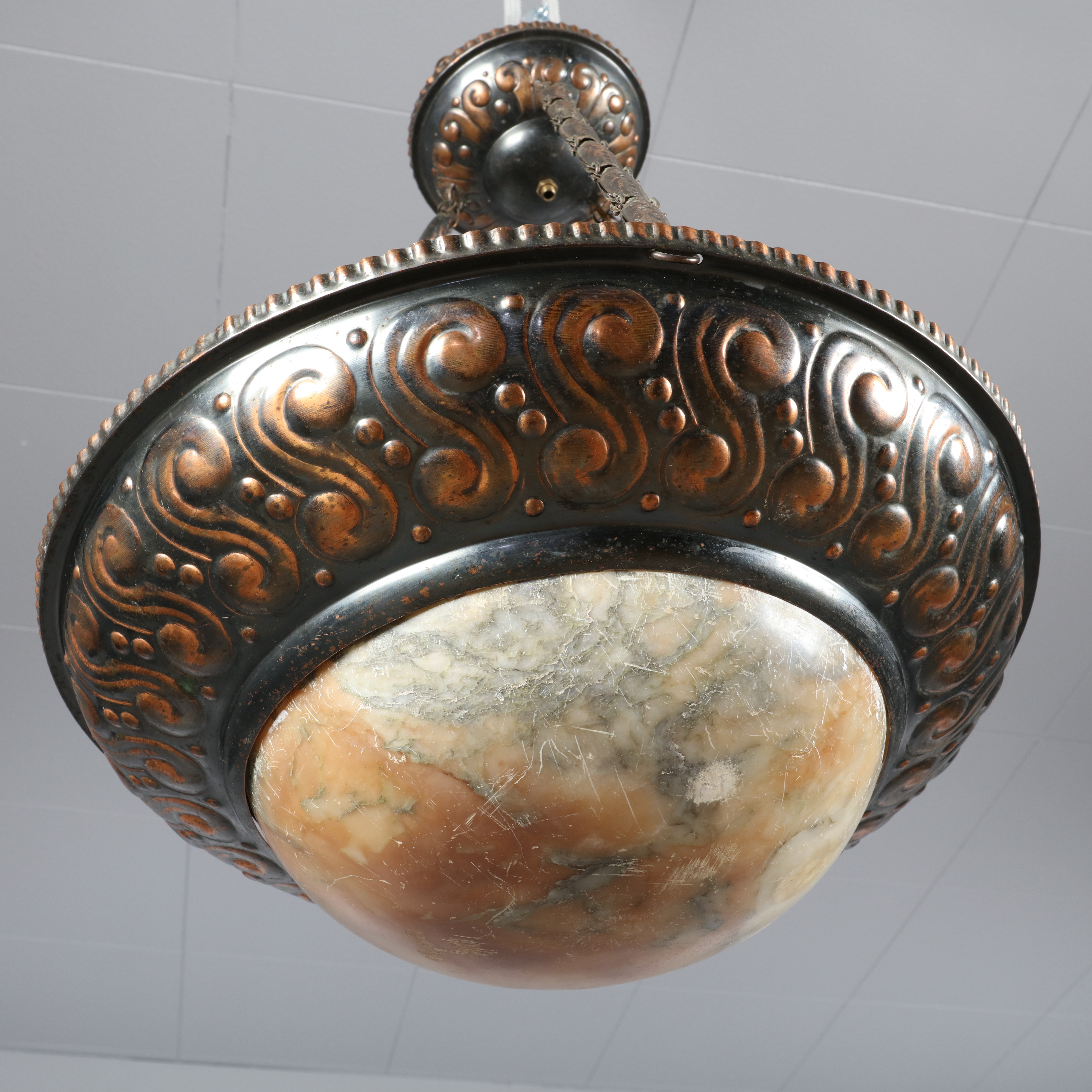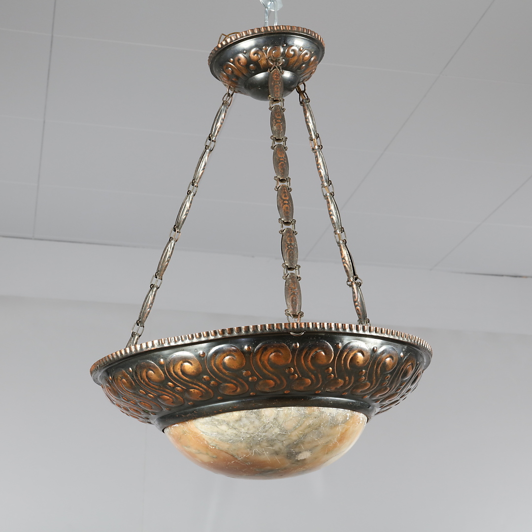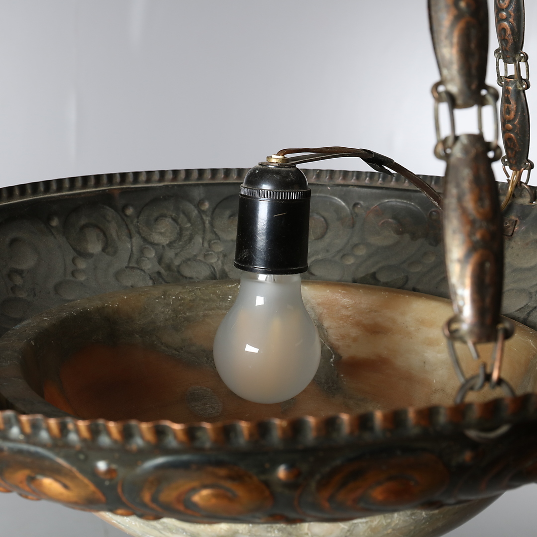 1027139. JUGENDSTIL-LAMPE, Kupfer, Alabaster.