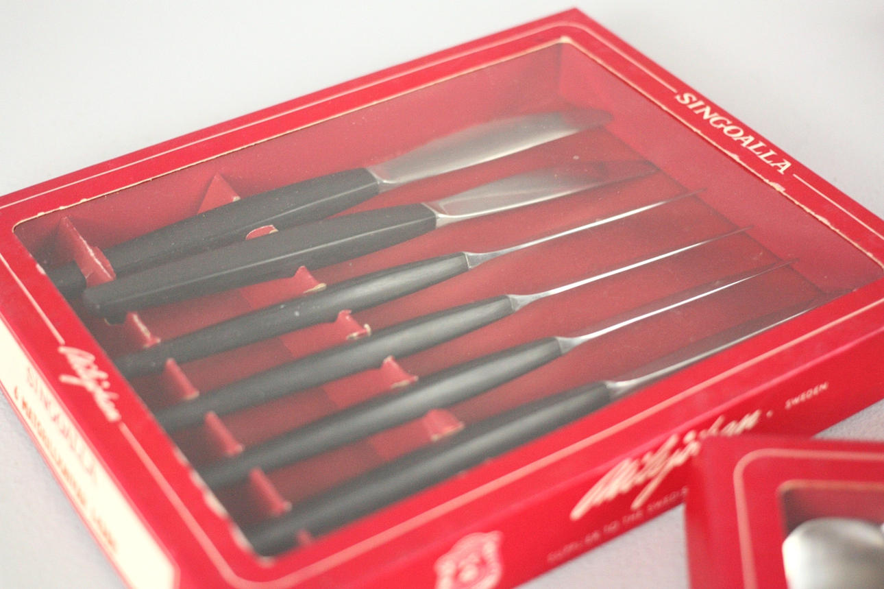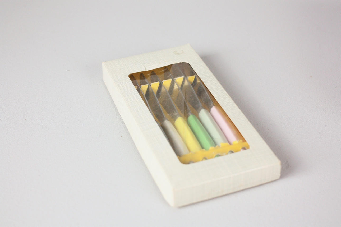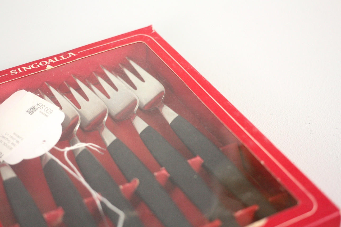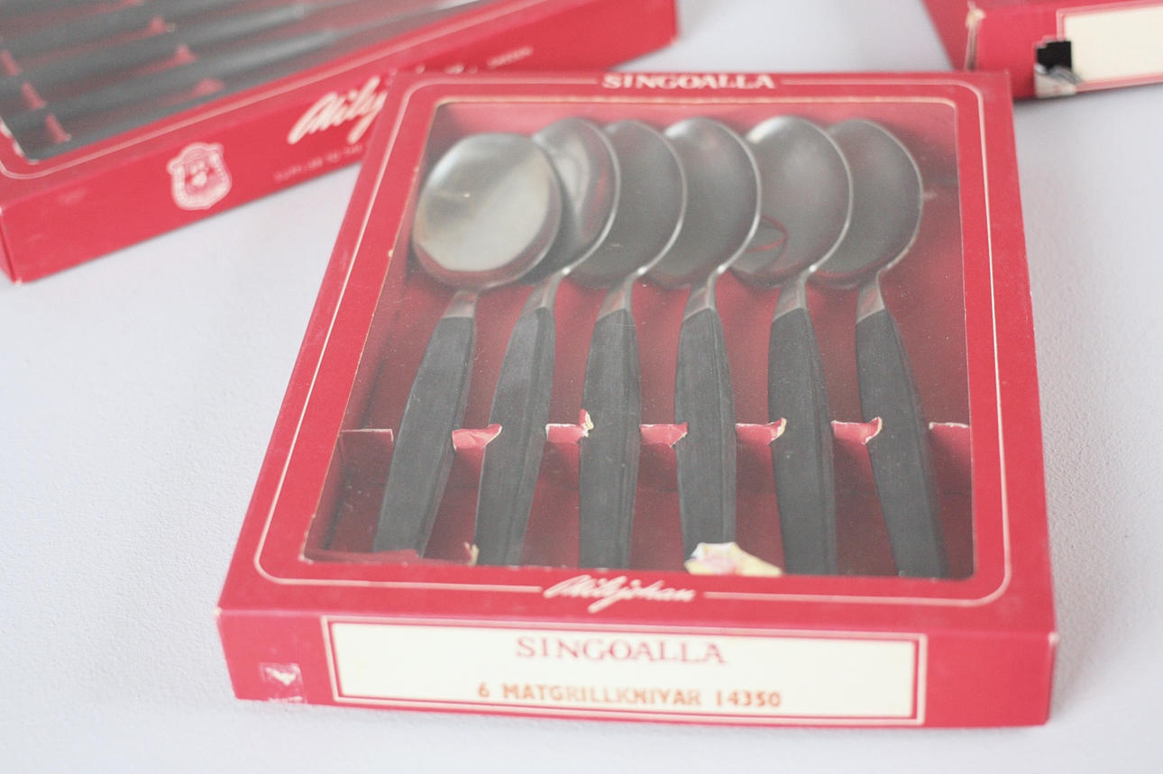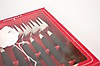 6 Löffel 6 Gabeln 6 Messer 6 Obstmesser mit gemischten Farben an den Griffen. Alles in Originalverpackung.