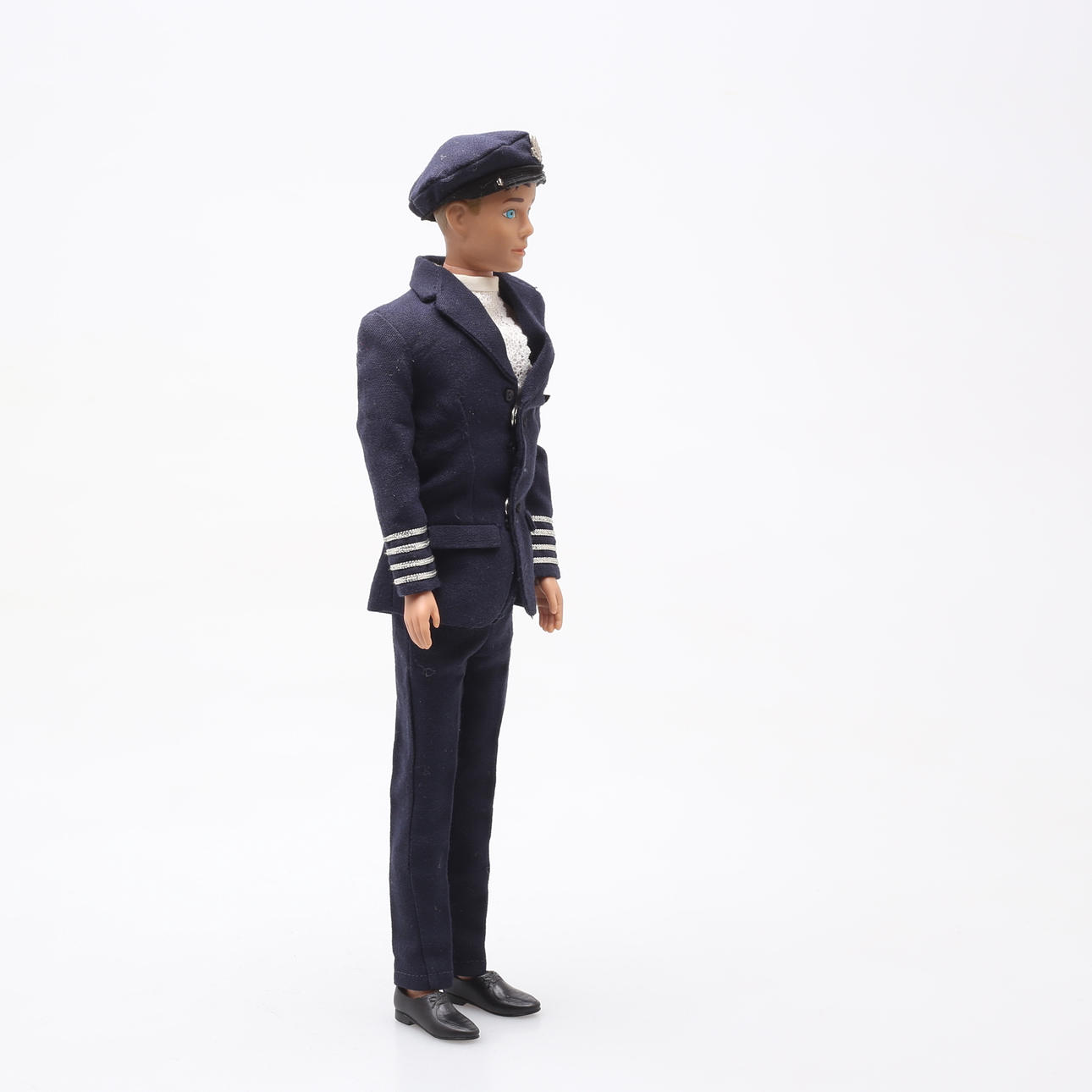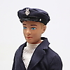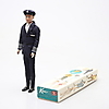 Unwesentliche Gebrauchsspuren an der Puppe, Uniform mit einigen Gebrauchsspuren, Mützenschirm fehlt. Box mit Text darunter.