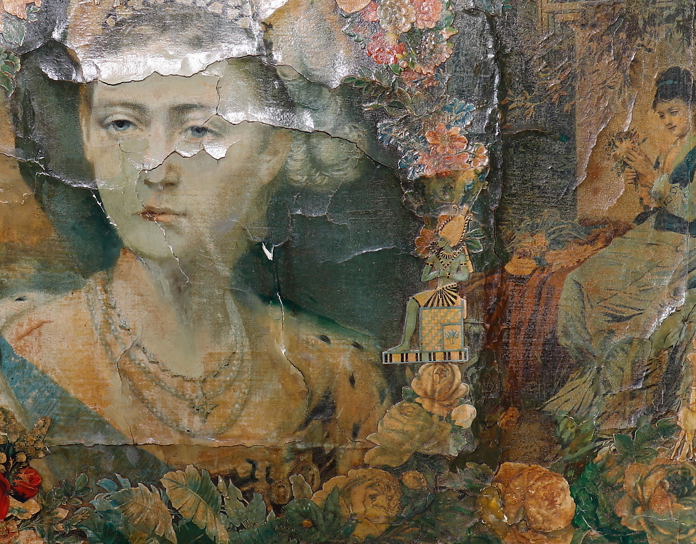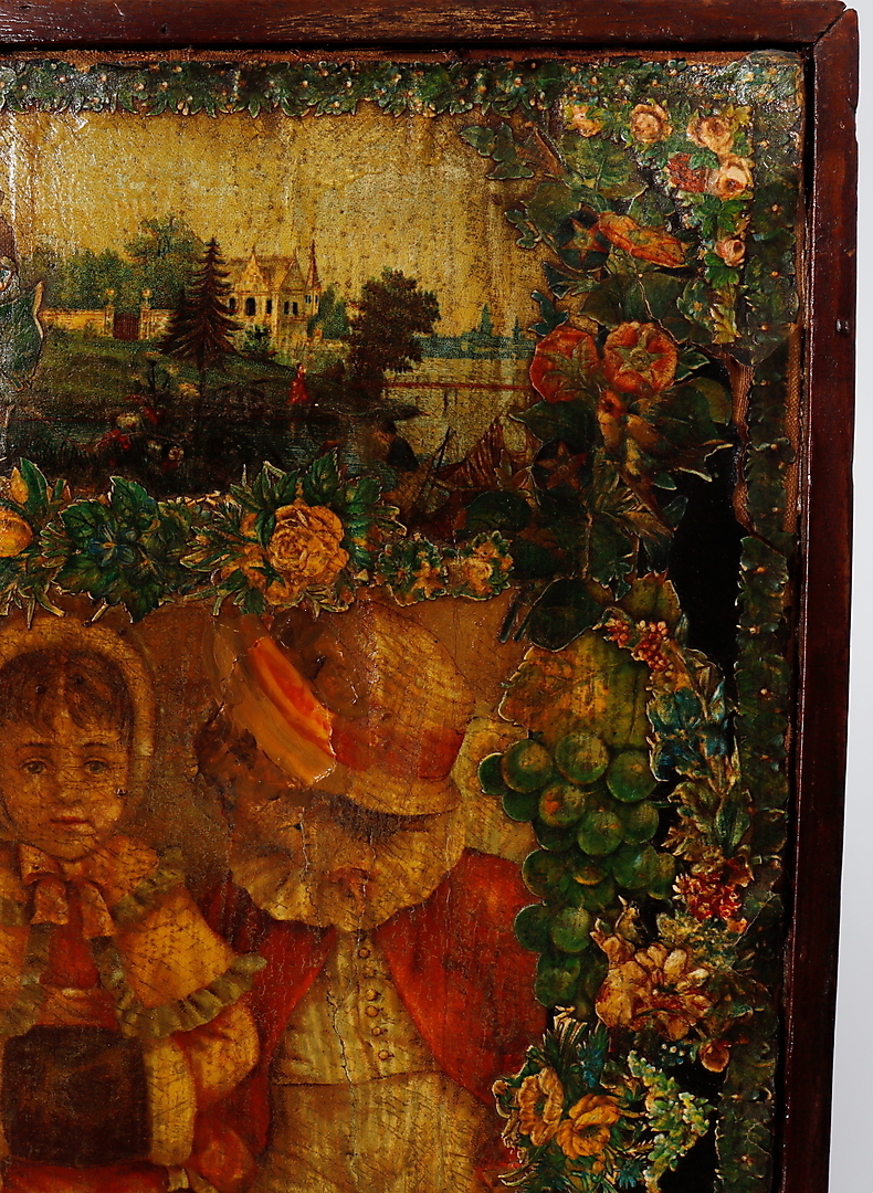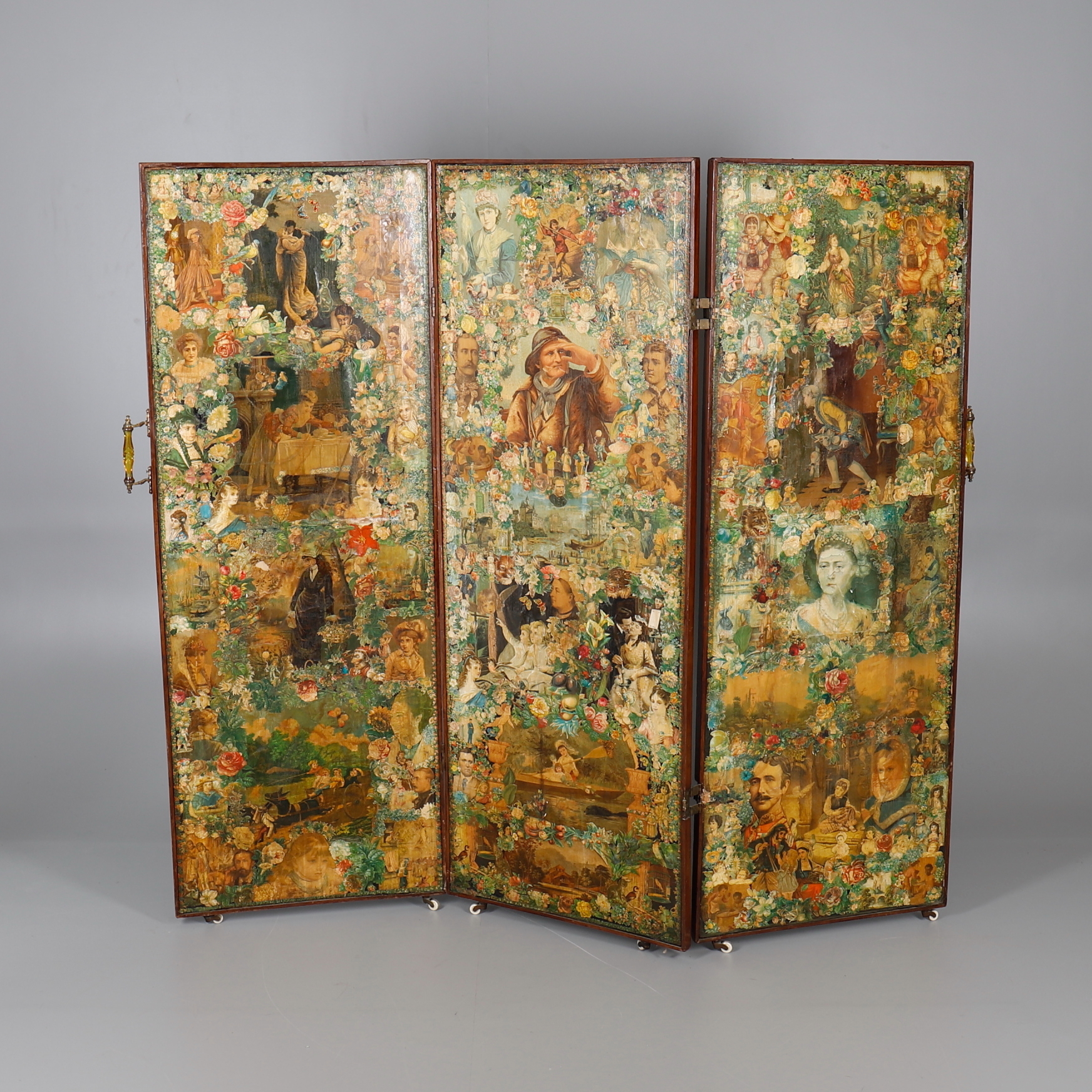 1038479. VIKTORIANISCHES DECOUPAGE-DREIFALZBILD.
