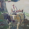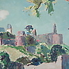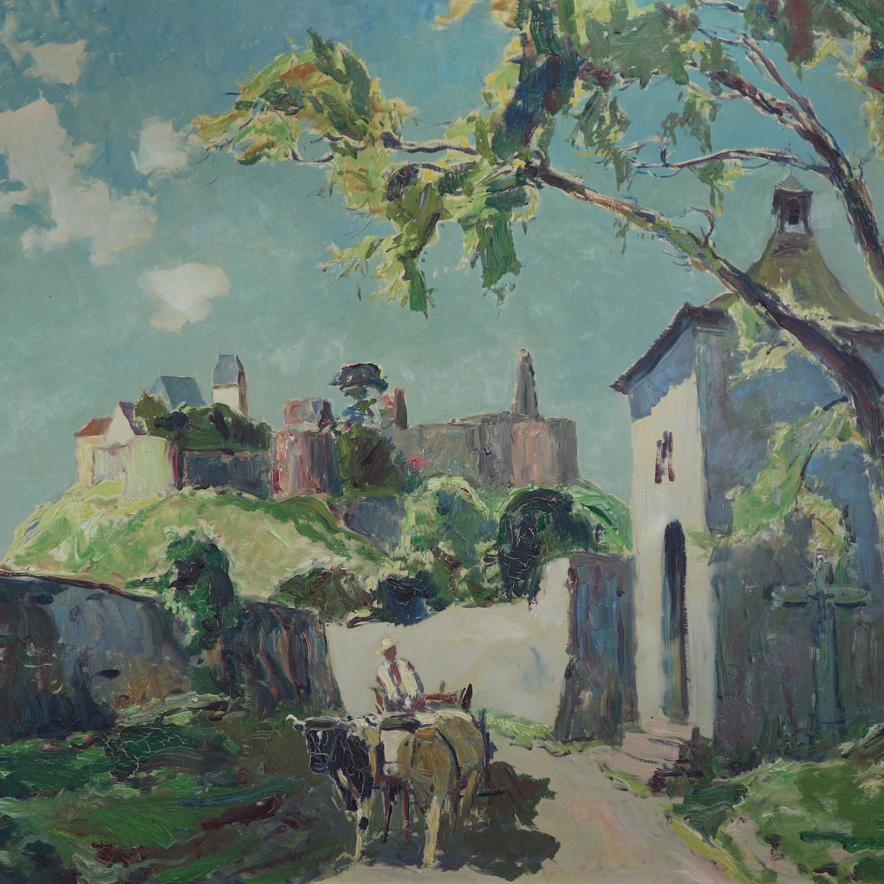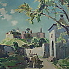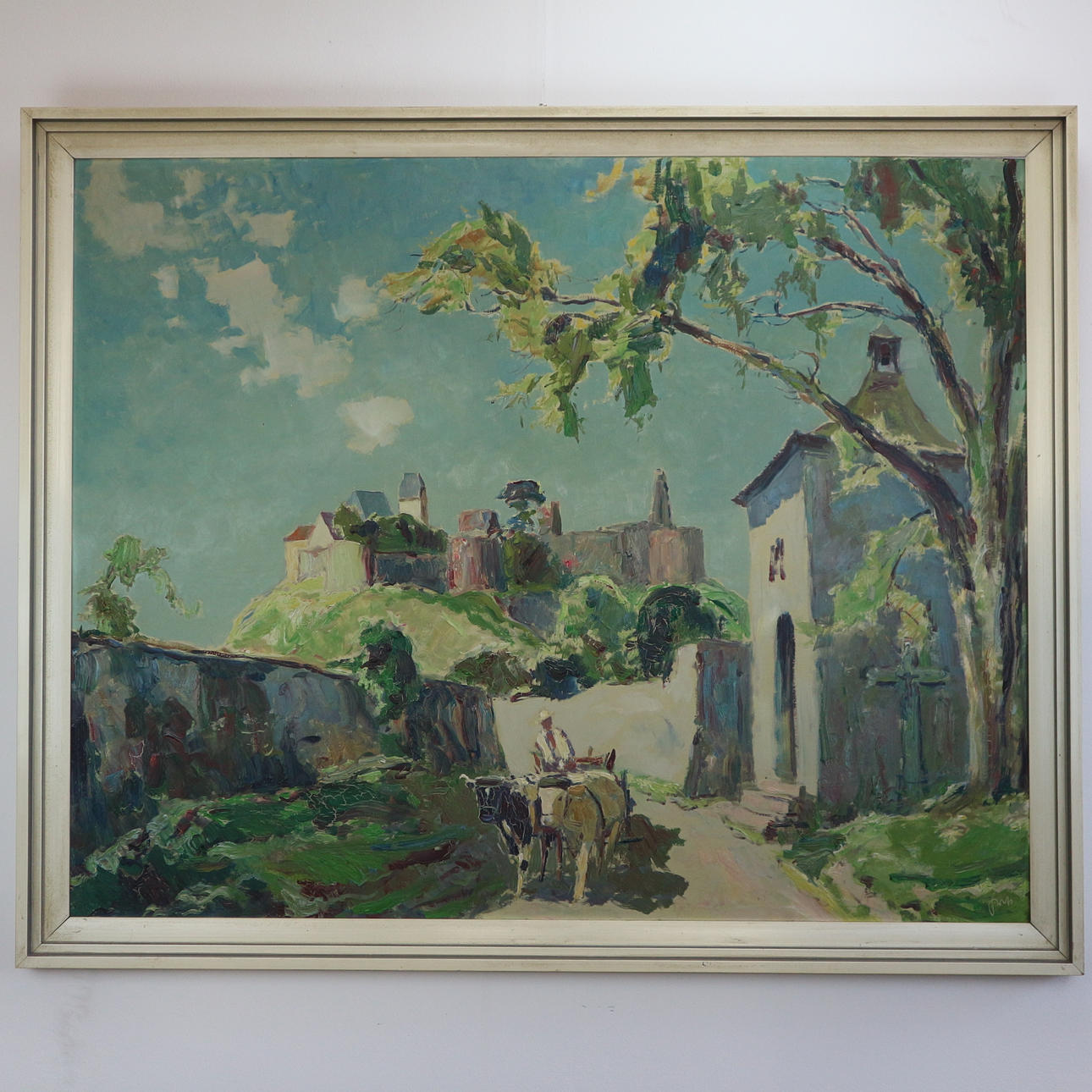 Öl auf Hartfaser, Darstellung der Burg Neuleiningen in der Pfalz. Rahmenmaße: 108 x 88 cm.