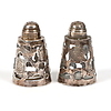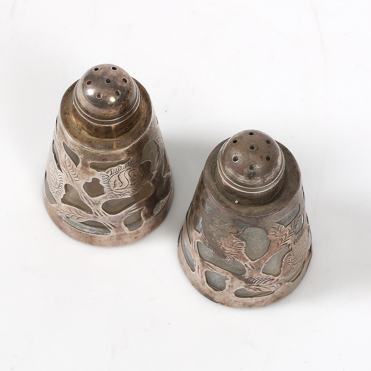 Sprinkler mit Glasbehälter, der mit durchbrochenem und graviertem Sterlingsilber überzogen ist. Höhe ca. 5,5cm.