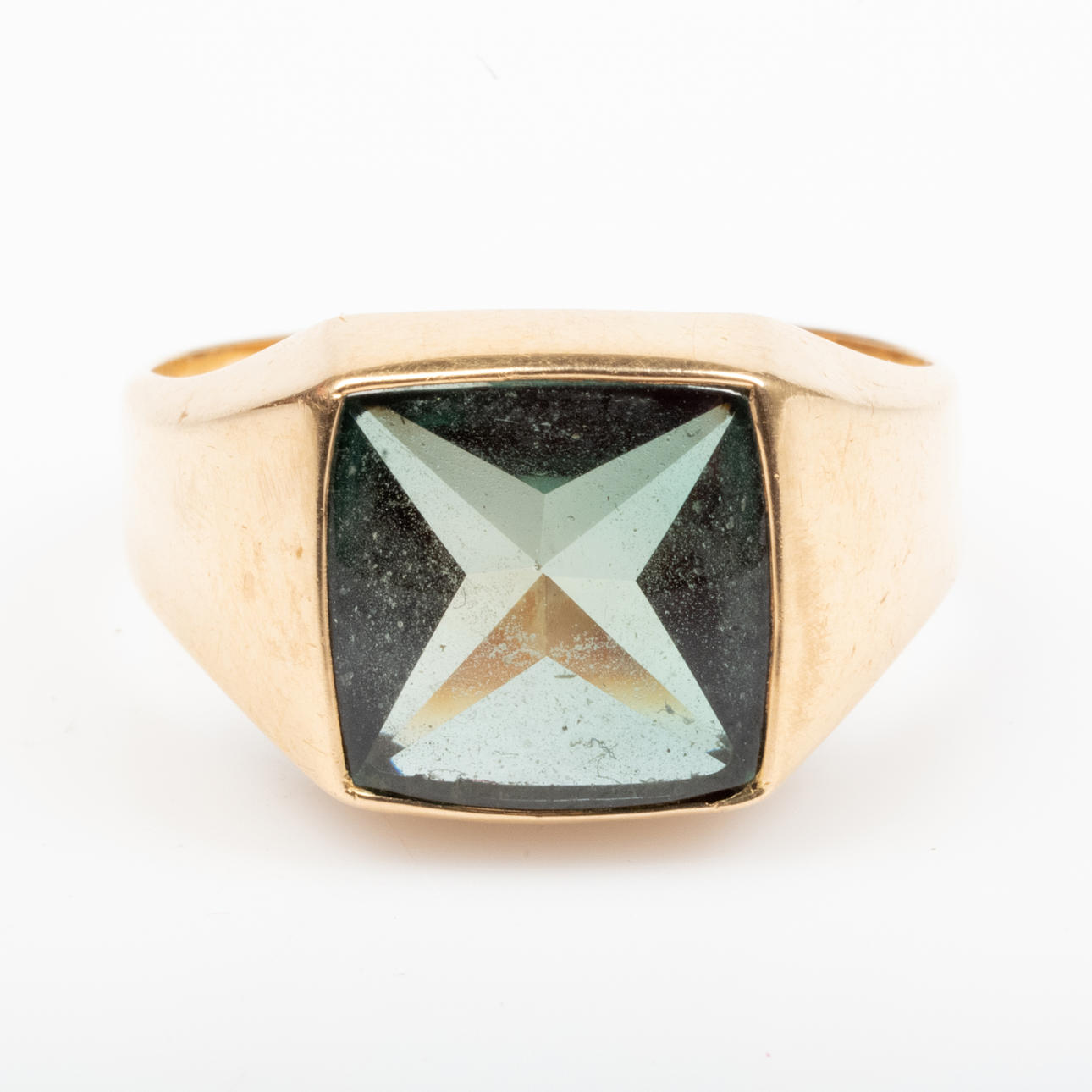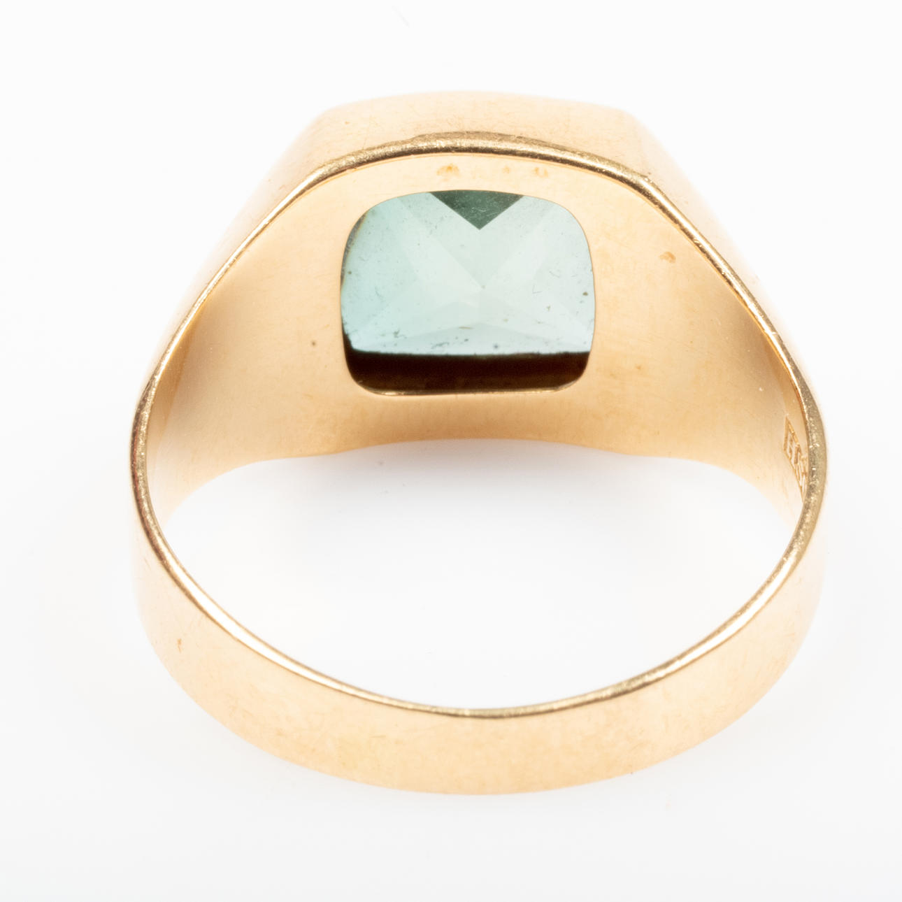 1049257. RING, 18 Karat Gold mit grünem Stein.