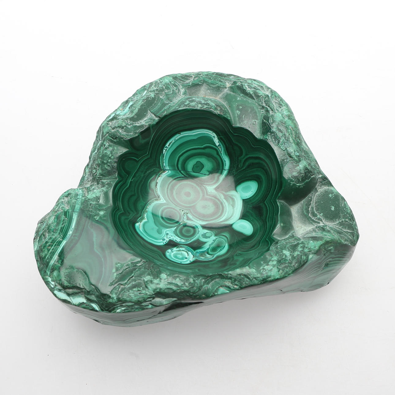 Verarbeiteter Malachitstein mit natürlicher Basis.