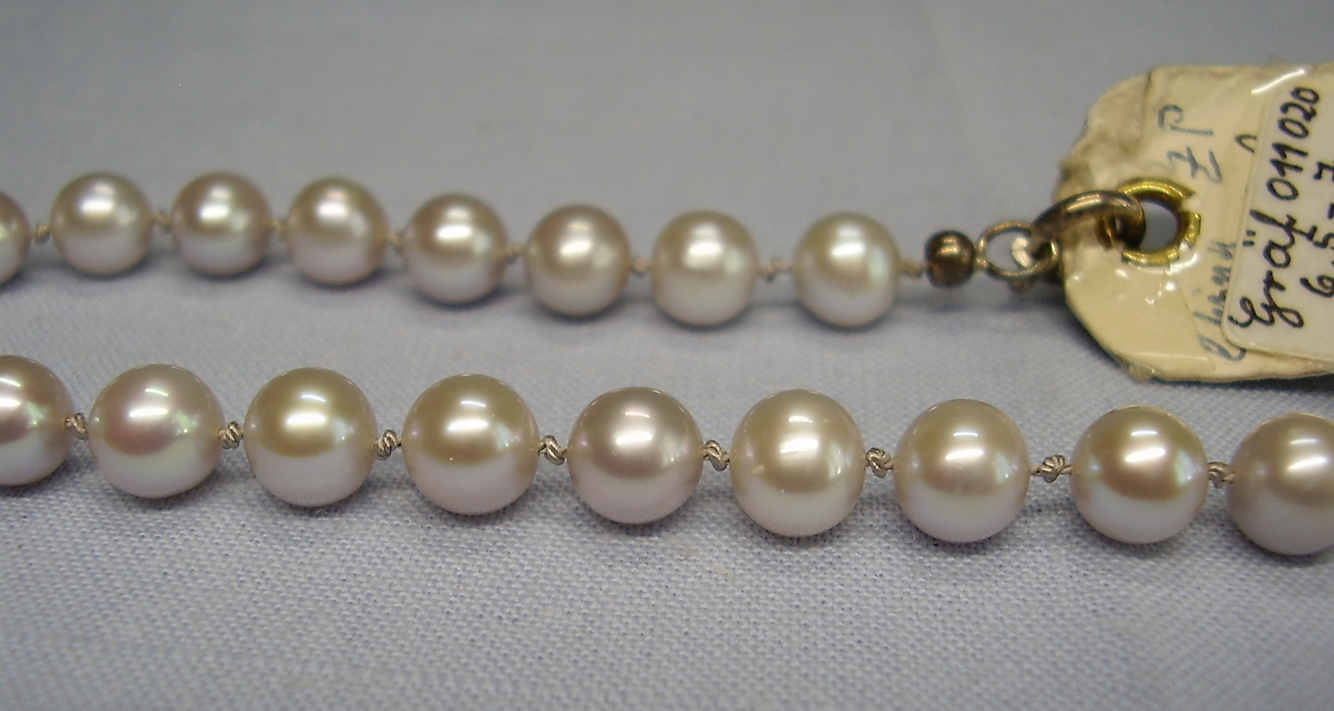 1052838. PERLENKETTE ECHTE ZUCHTPERLEN GRAU 52 cm.
