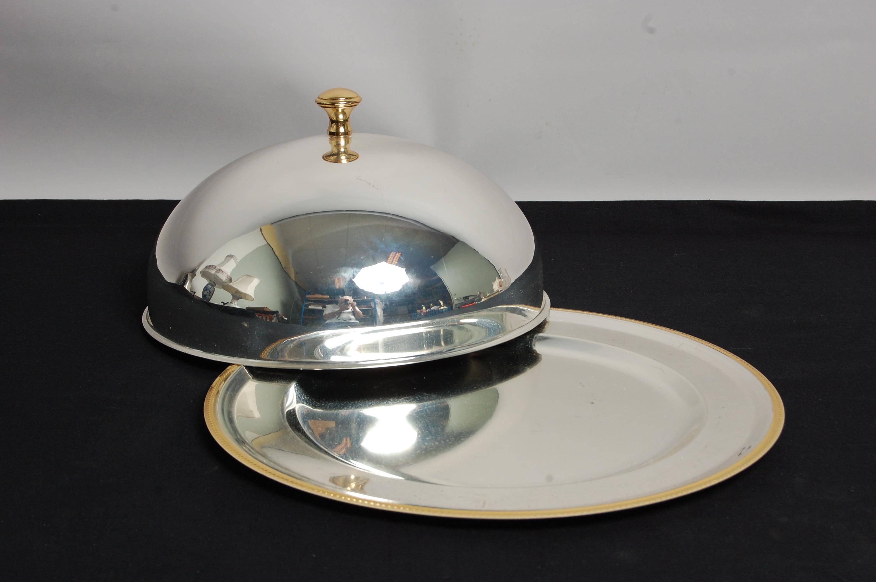 106001. SERVIERPLATTE mit HUV, Neusilber.