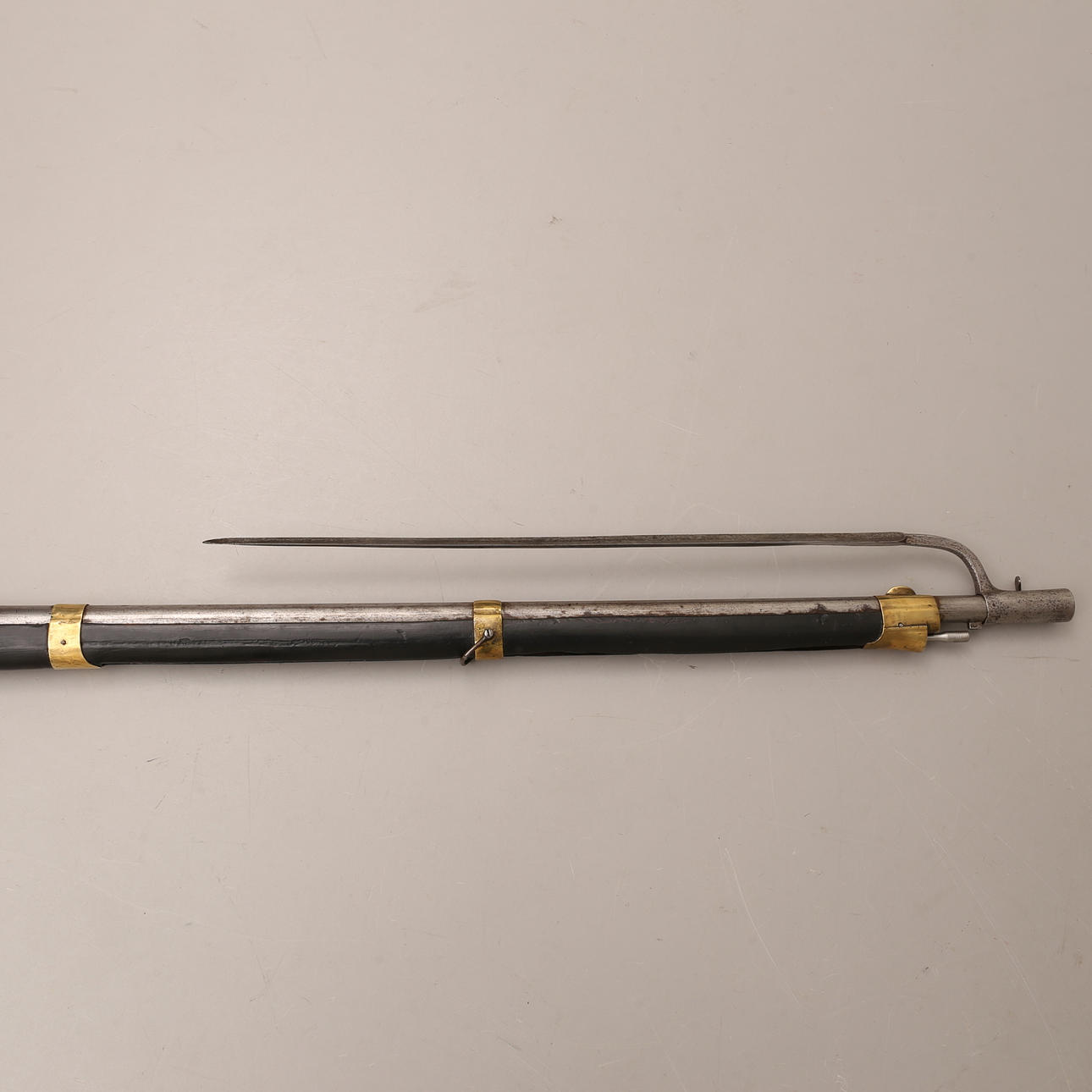 Länge ohne Bajonett ca. 147 cm Schwedische Steinschlossmuskete von m/1791 Reparaturmodell basierend auf m/1747. Zugehöriges Bajonett mit Schraube des Jahresmodells m/1791.