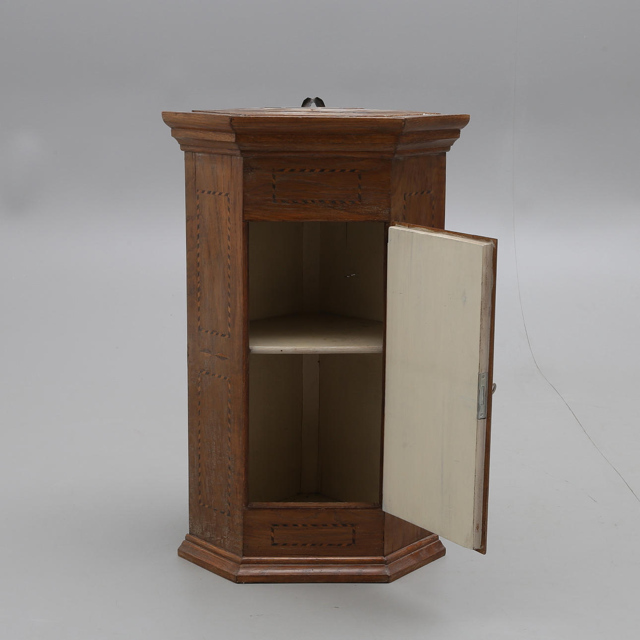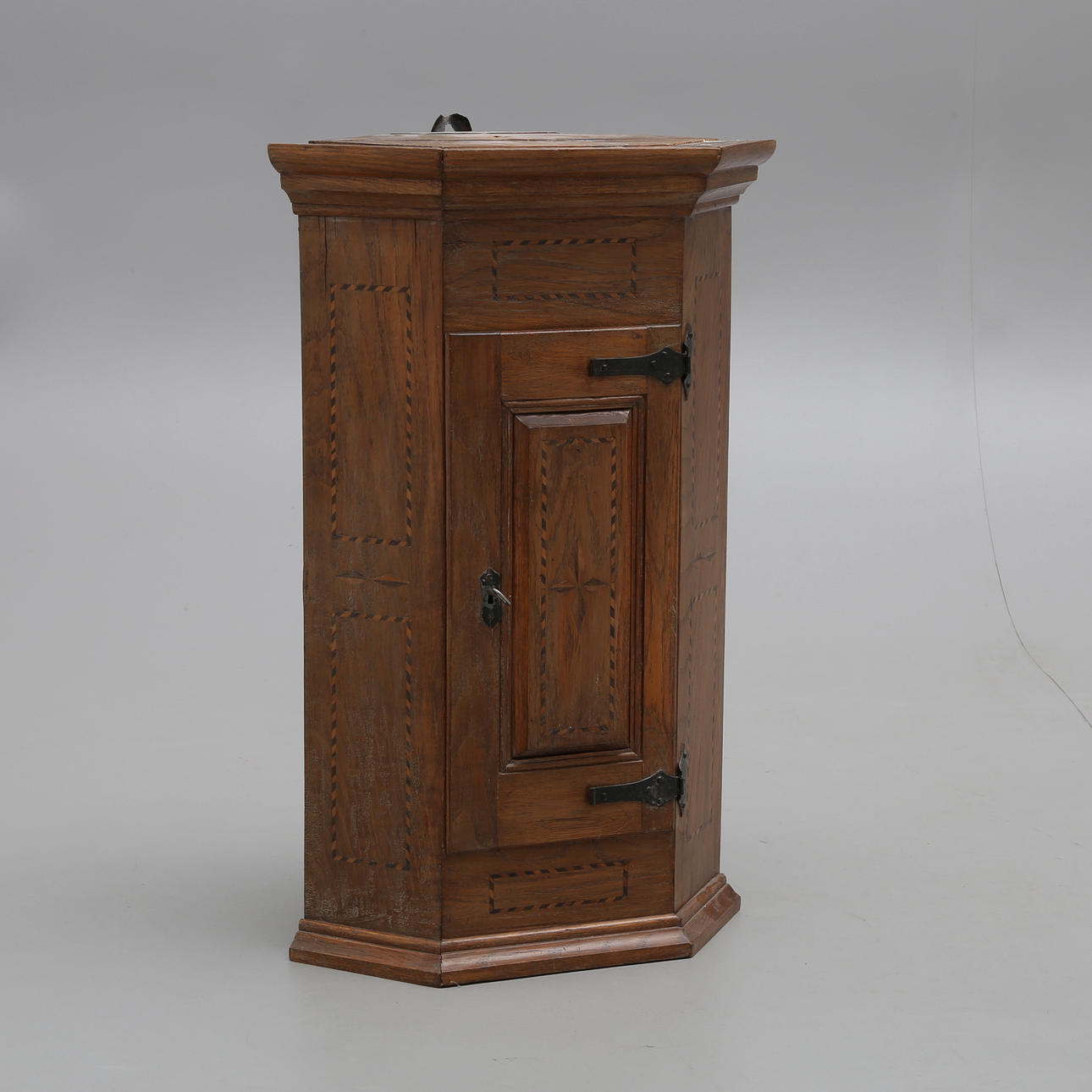 1063701. ECKSCHRANK, Eiche mit Intarsien, antik.