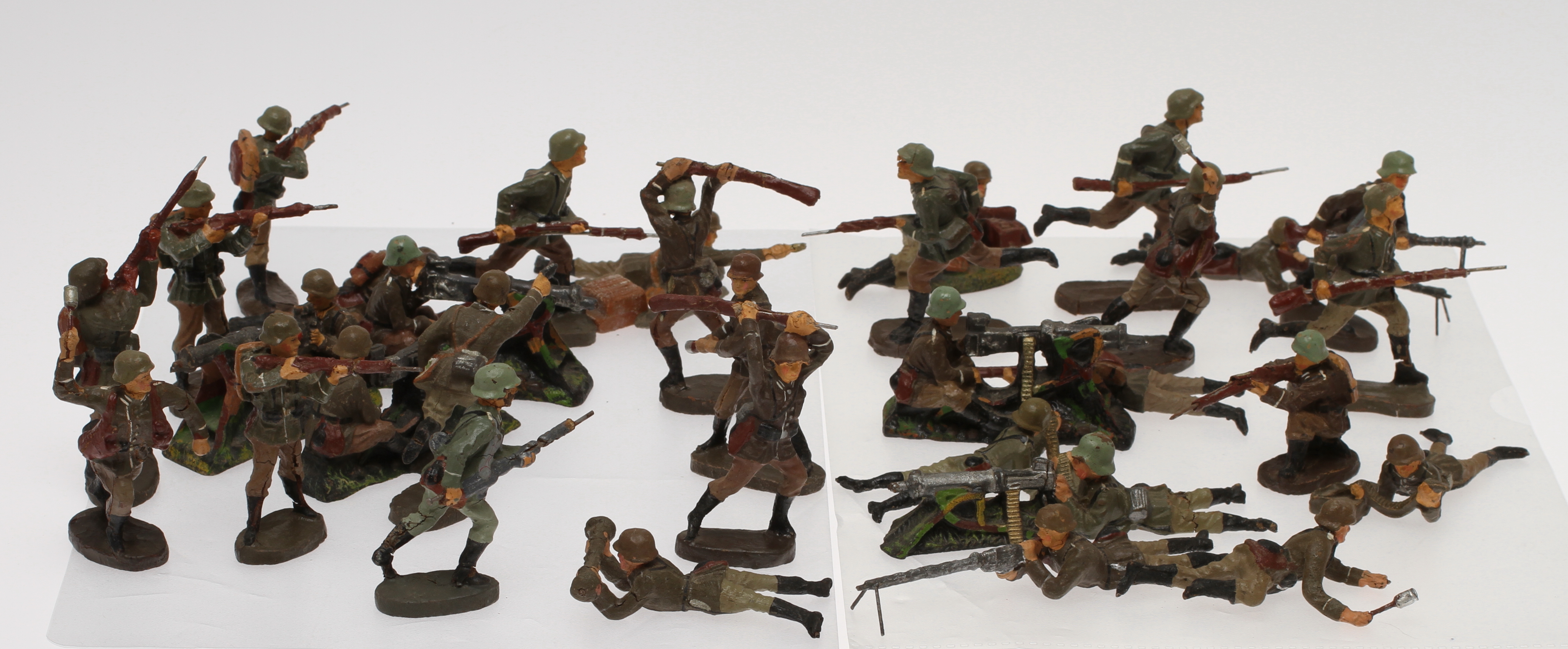 10667. ELASTOLIN-SOLDATEN 1940er Jahre, 32 Kämpfer.
