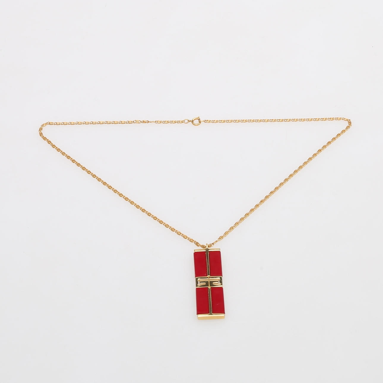 rotes Glas und Kette, gestempelt Givenchy 1979, Höhe 5 cm.