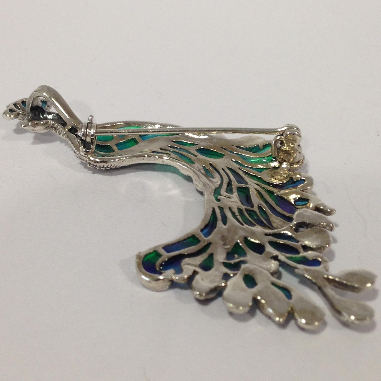 Dieser Pfau ist in eine zweifarbige Emaillierung gefasst.