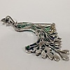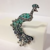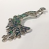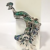 Der Pfau ist außerdem mit runden Markasitsteinen an Hals, Brust und Schwanzfedern besetzt.