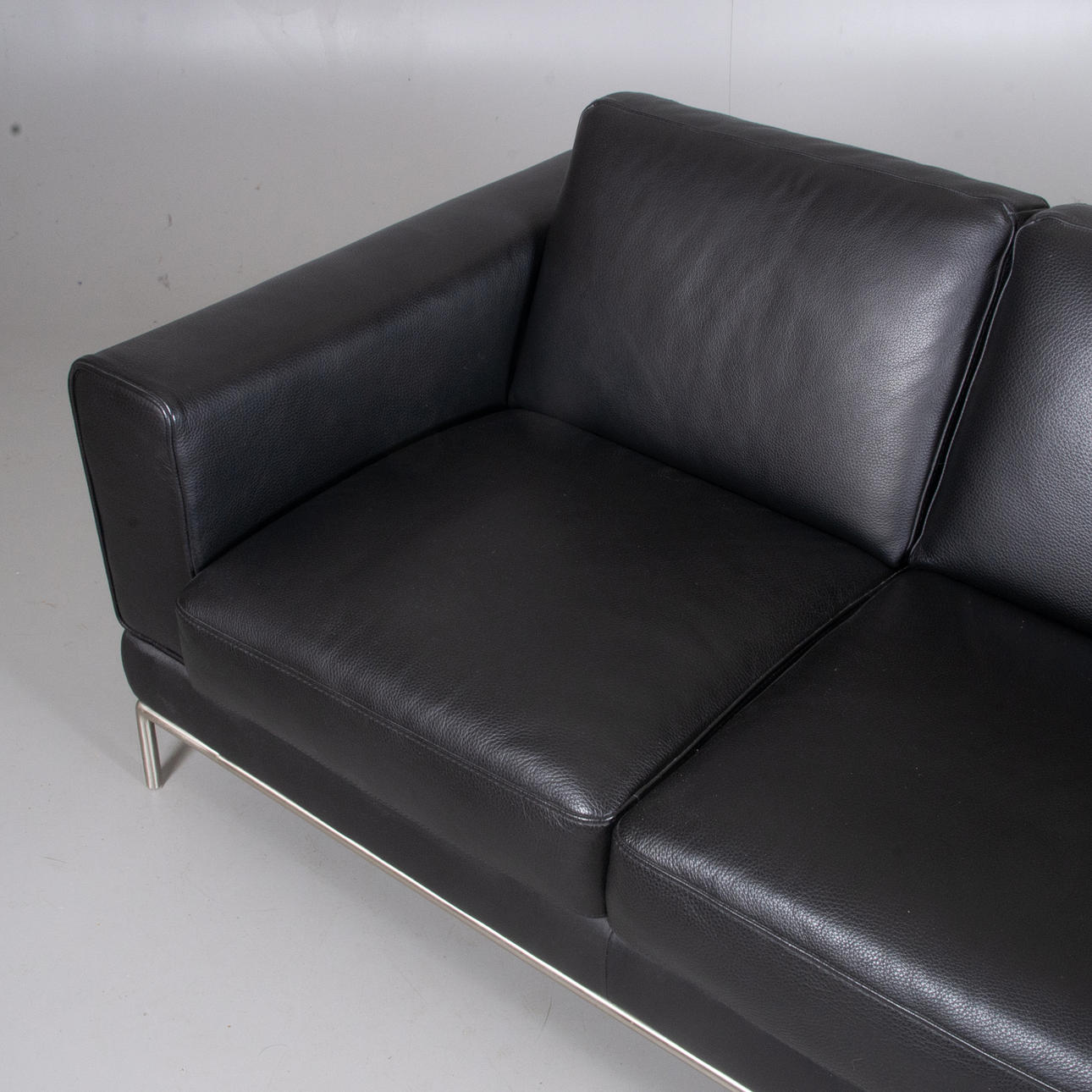 1079220. SOFA MIT FUSSSCHEIBE, "Arild", IKEA, schwarzes Leder.
