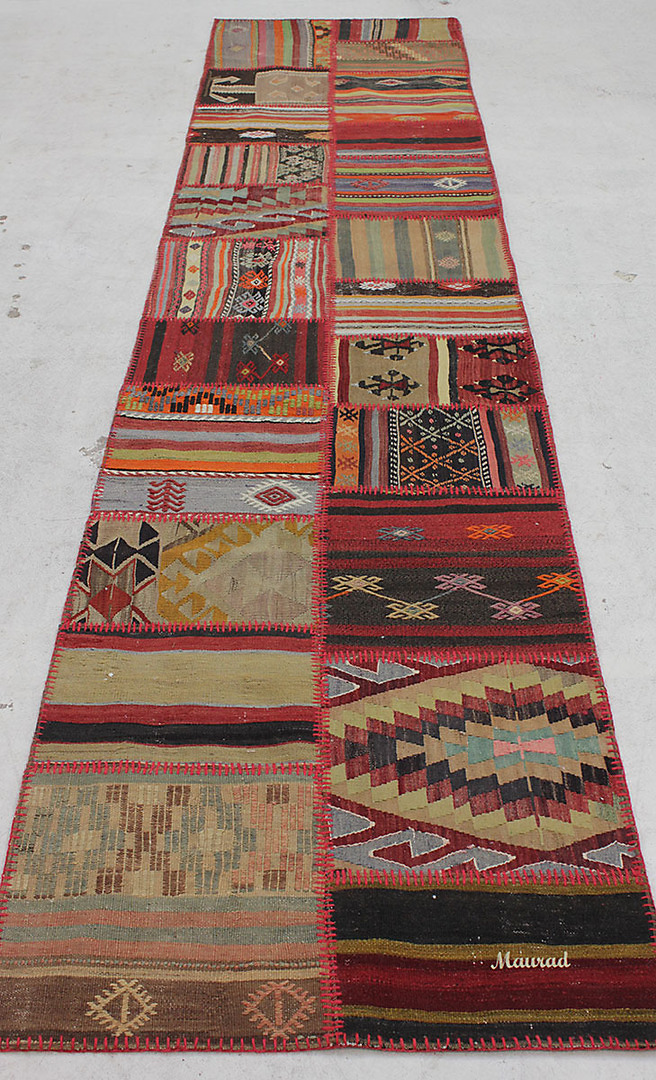 107954. TEPPICH, Orientalisch, Patchwork, Galeriemodell, 377 x 85 cm.