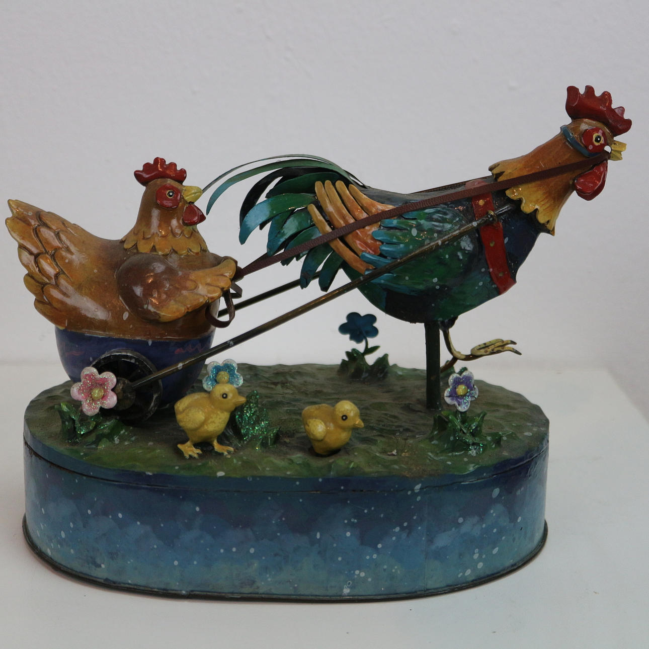 Ein Blechspielzeug inklusive Aufziehschlüssel, funktionsfähig, spielt eine Melodie, Maße: 24 x 20 cm.