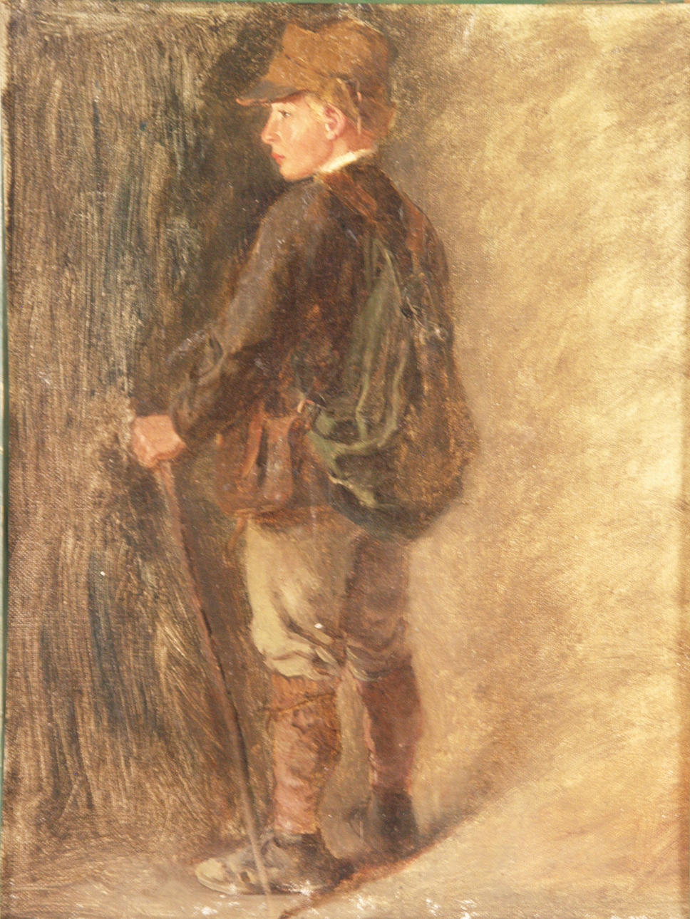 Burger, Anton (1824-1905, zugeschrieben) - "Jagdbursche", Öl auf Karton, verso Aufkleber "...Gemäss Auskunft eines Experten: Original Burger", gerahmt Rahmenausschnitt ca.33x25cm.
