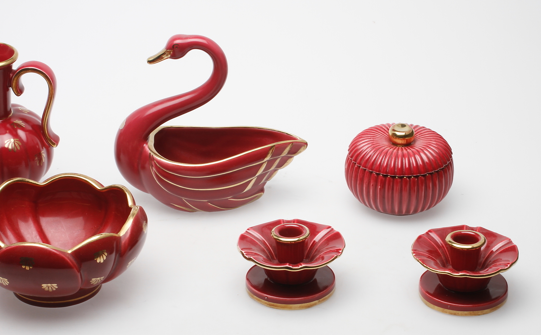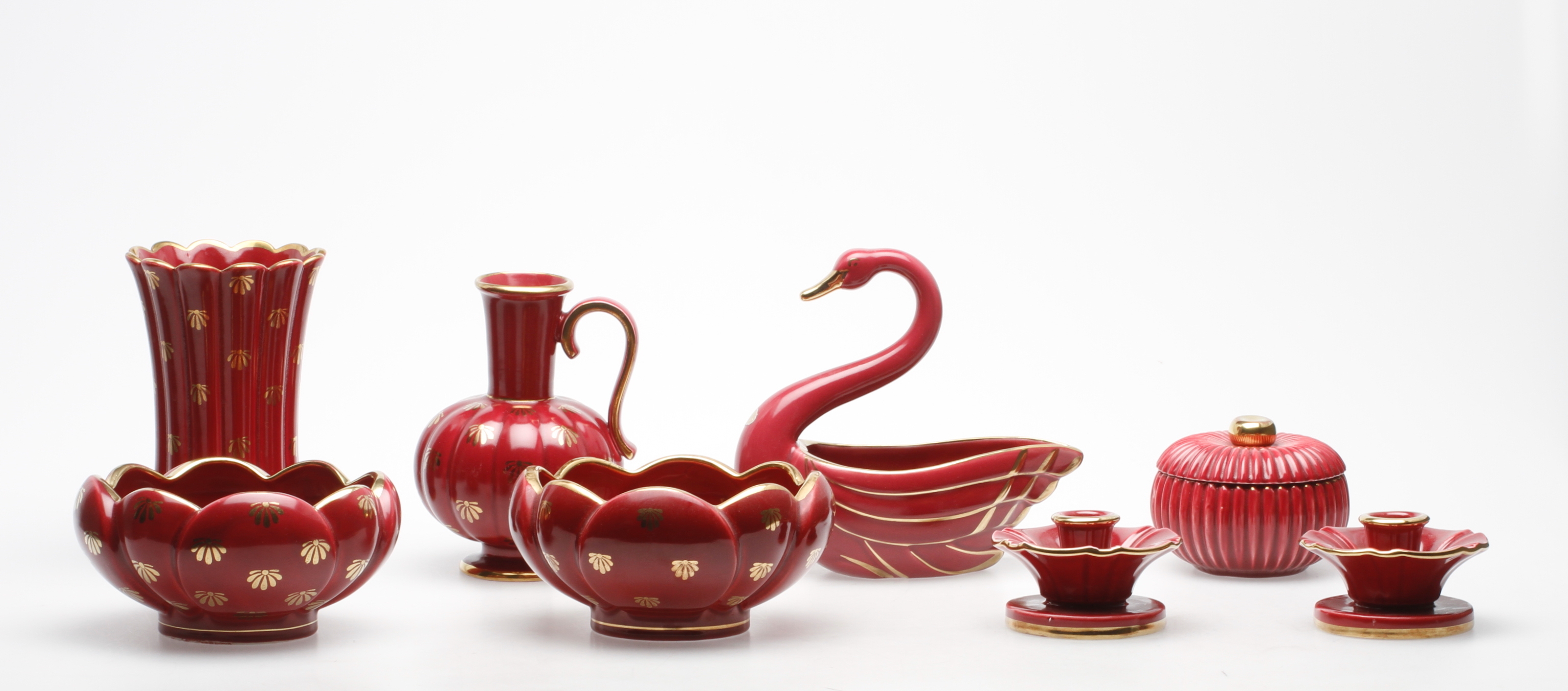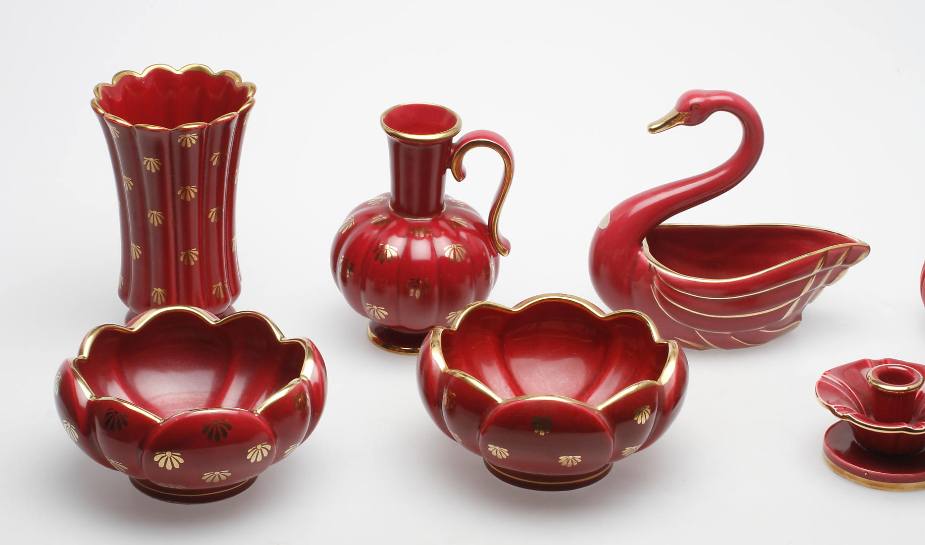 109193. KERAMIKARTIKEL, 8 Teile, "RUBIN", Gefle.