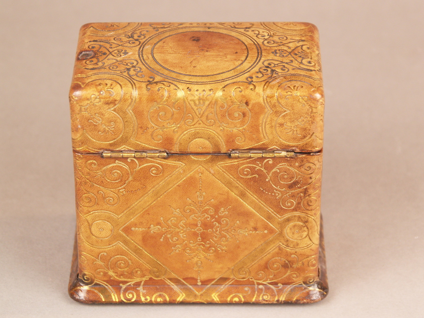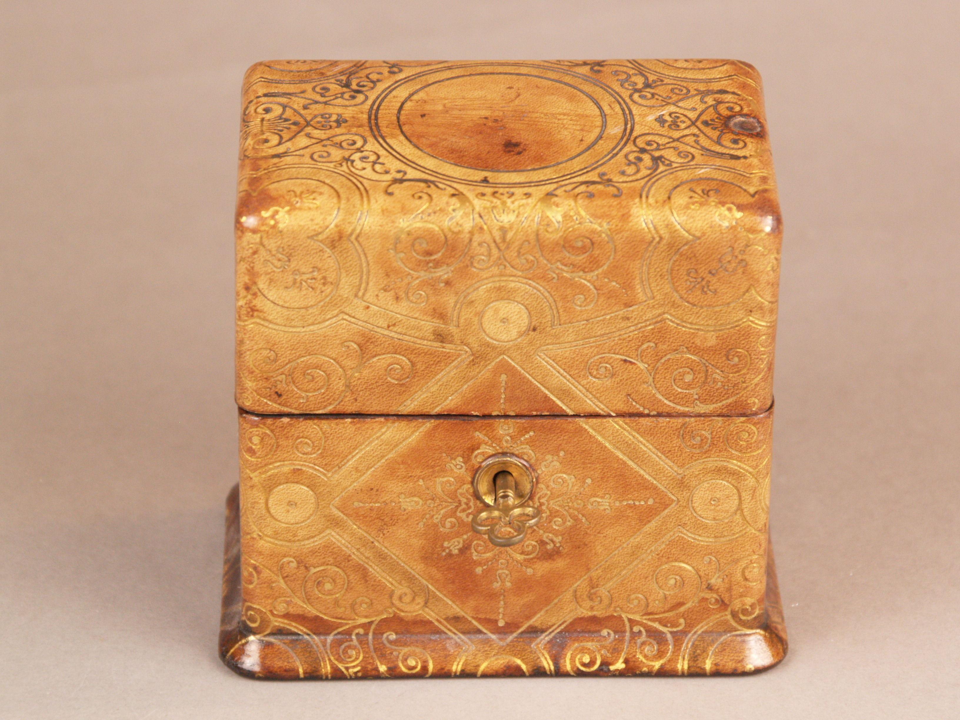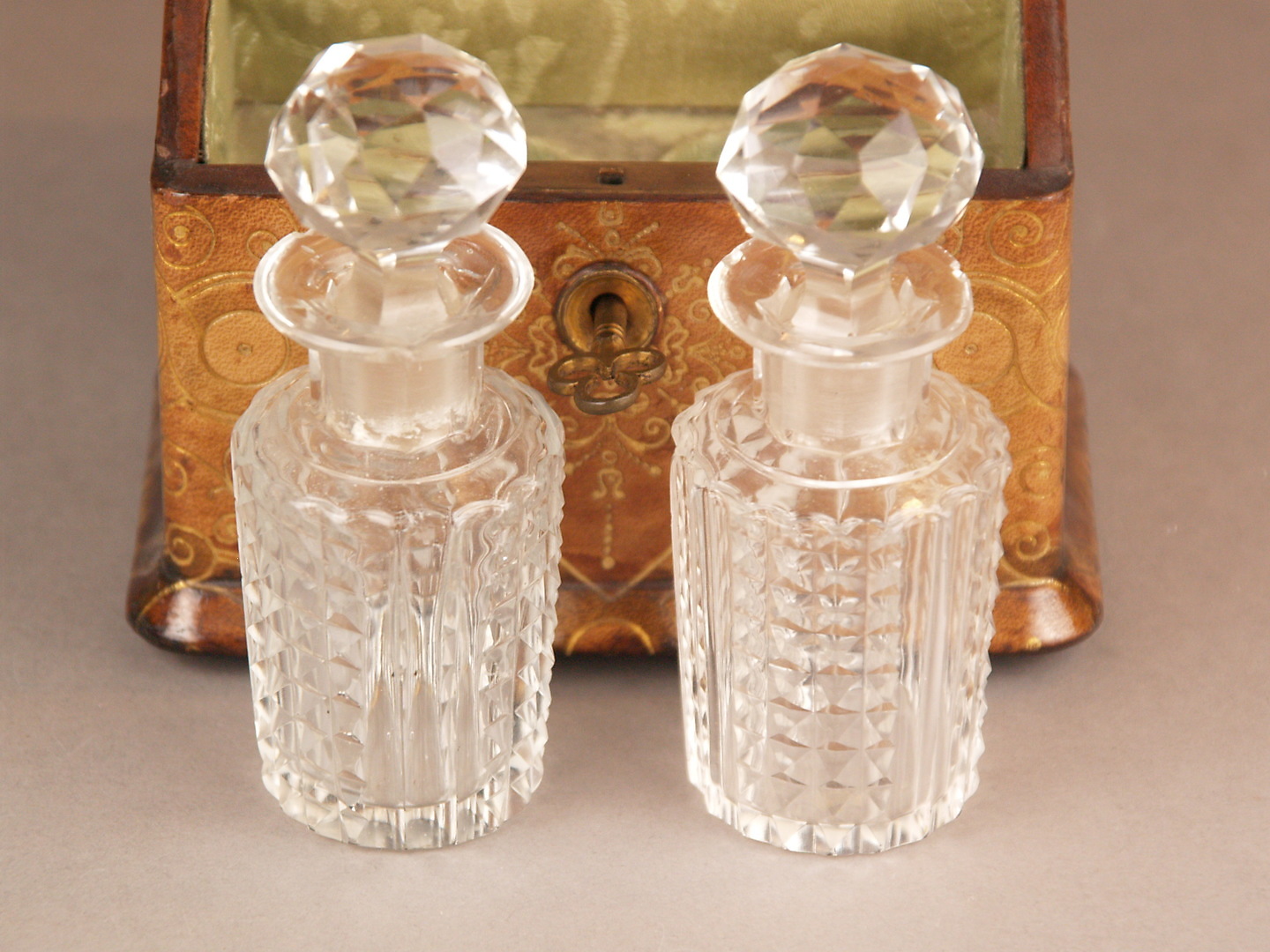 1097785. Altes Lederkästchen mit zwei PARFUM-FLAKONS.