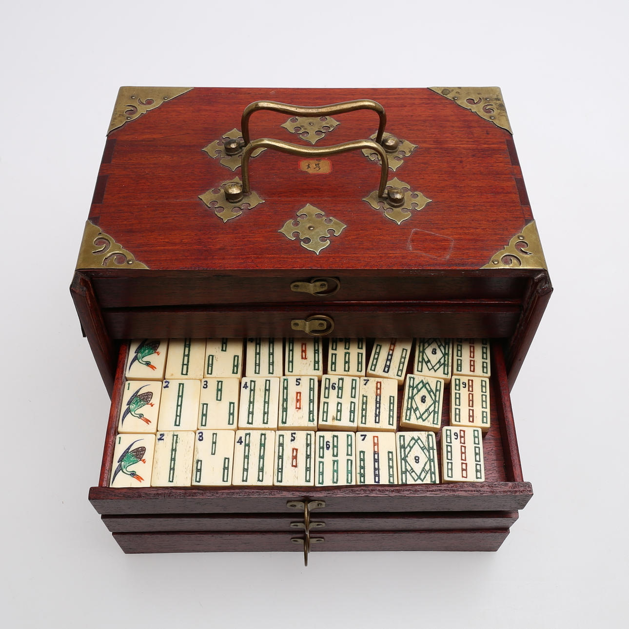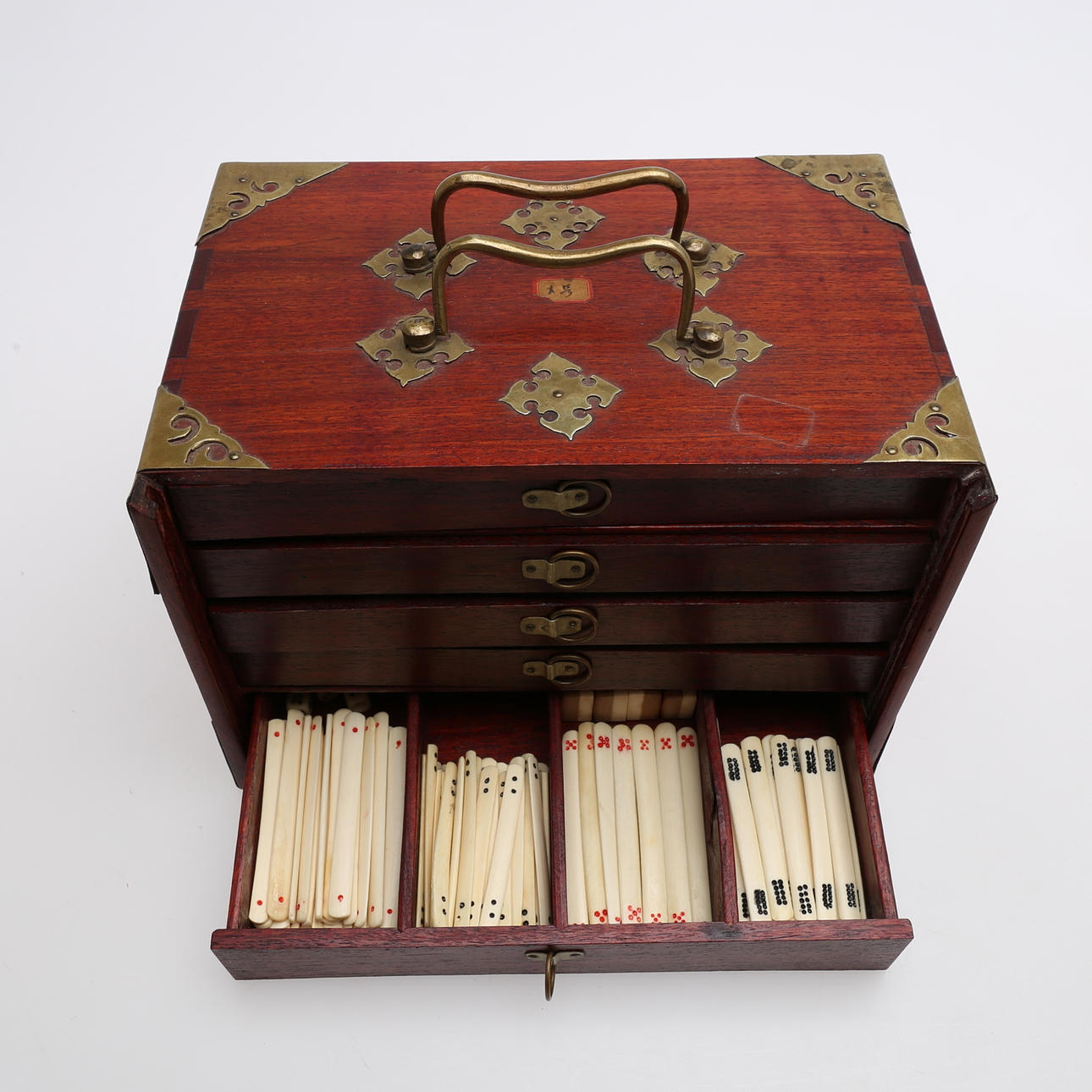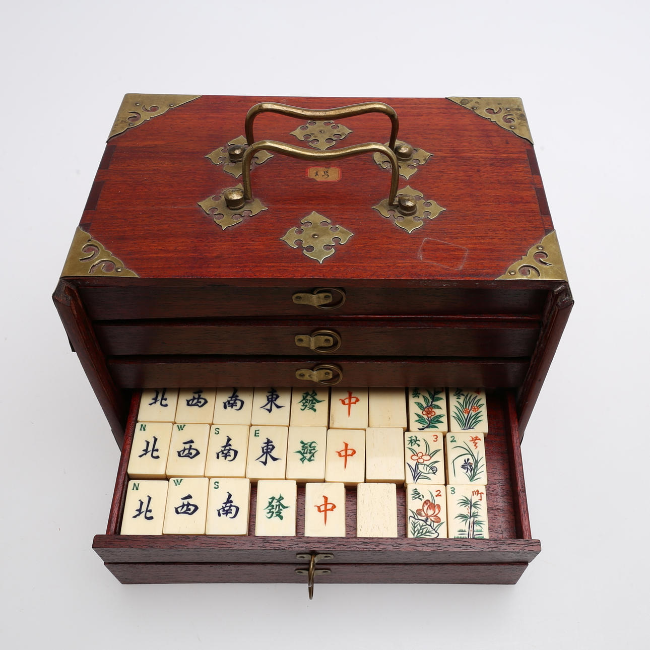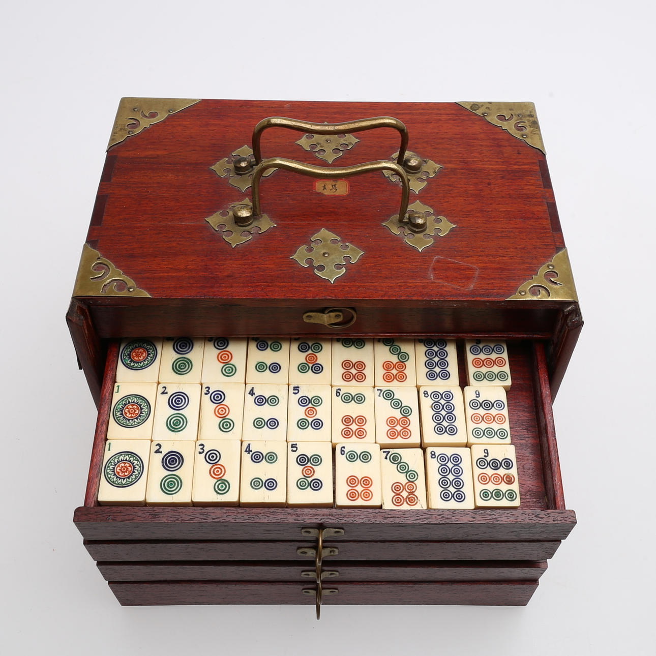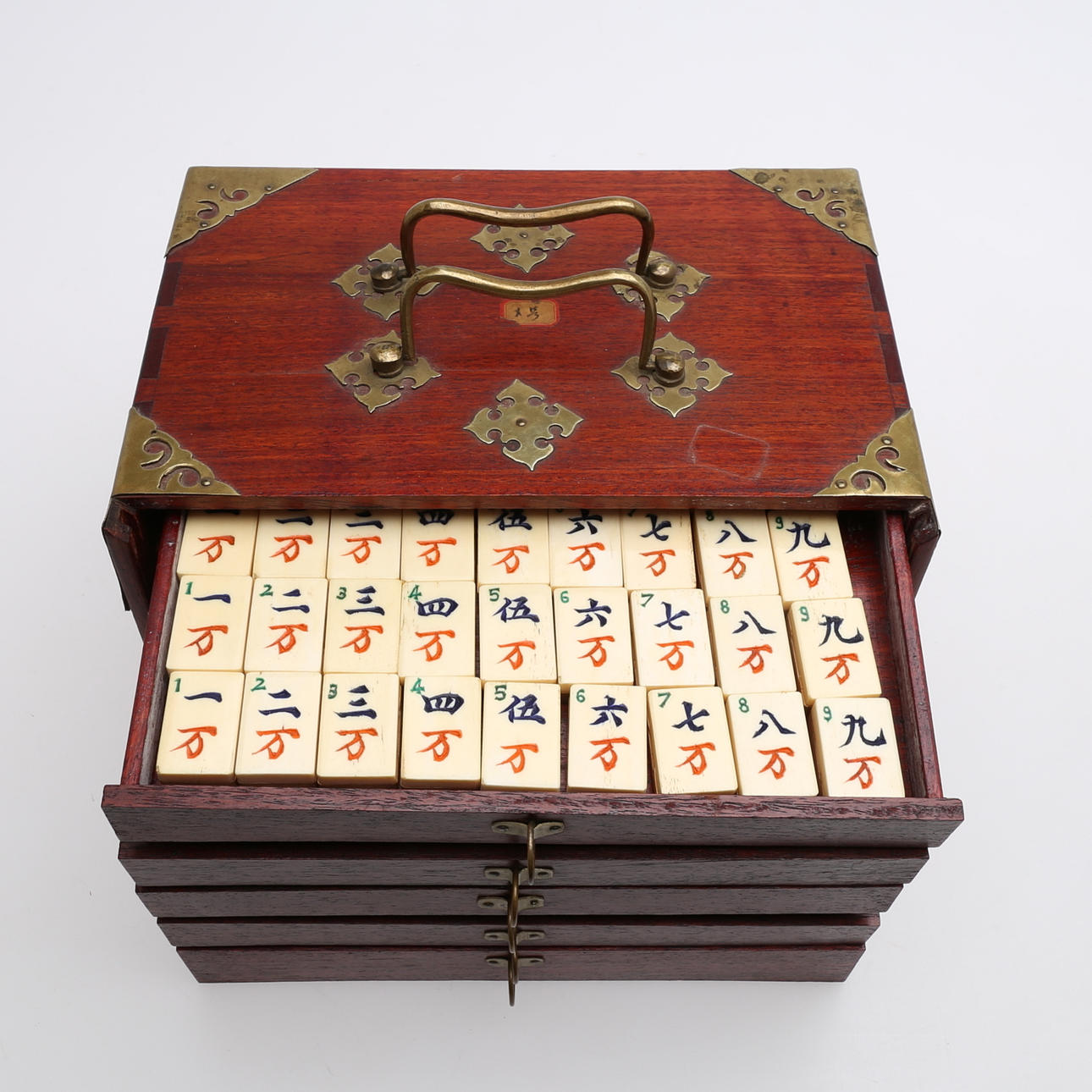 1102553. MAH-JONG GAME, mit Bambus- und Knochenplättchen, 111-tlg.