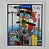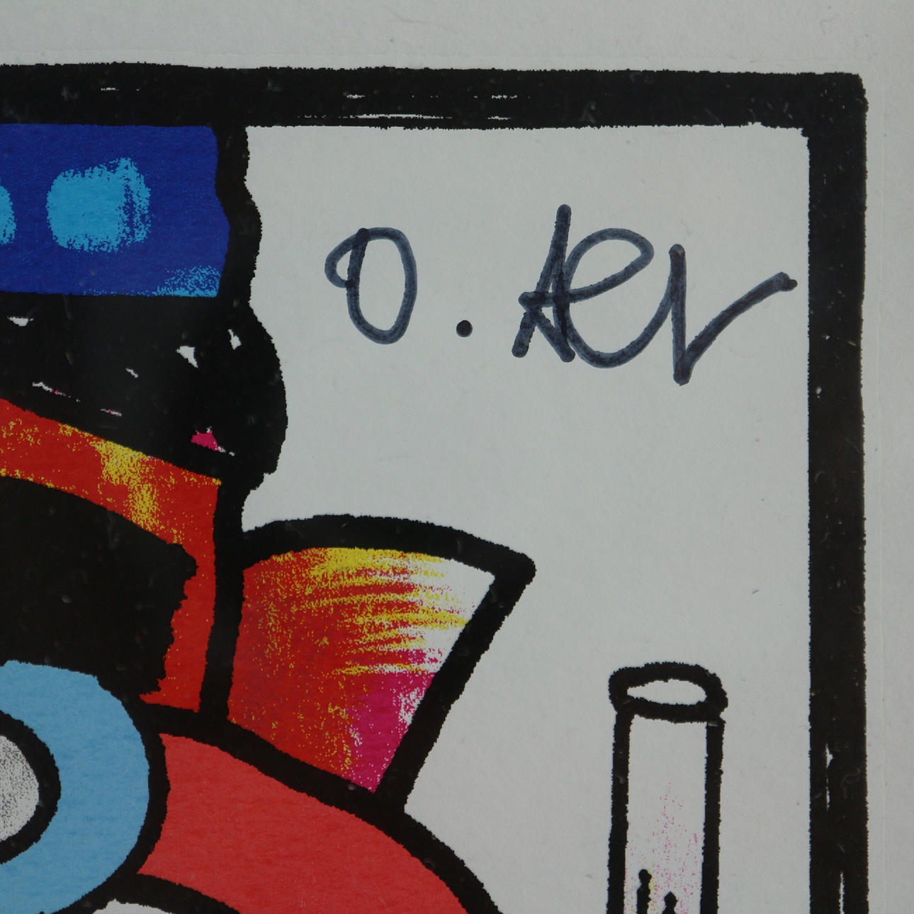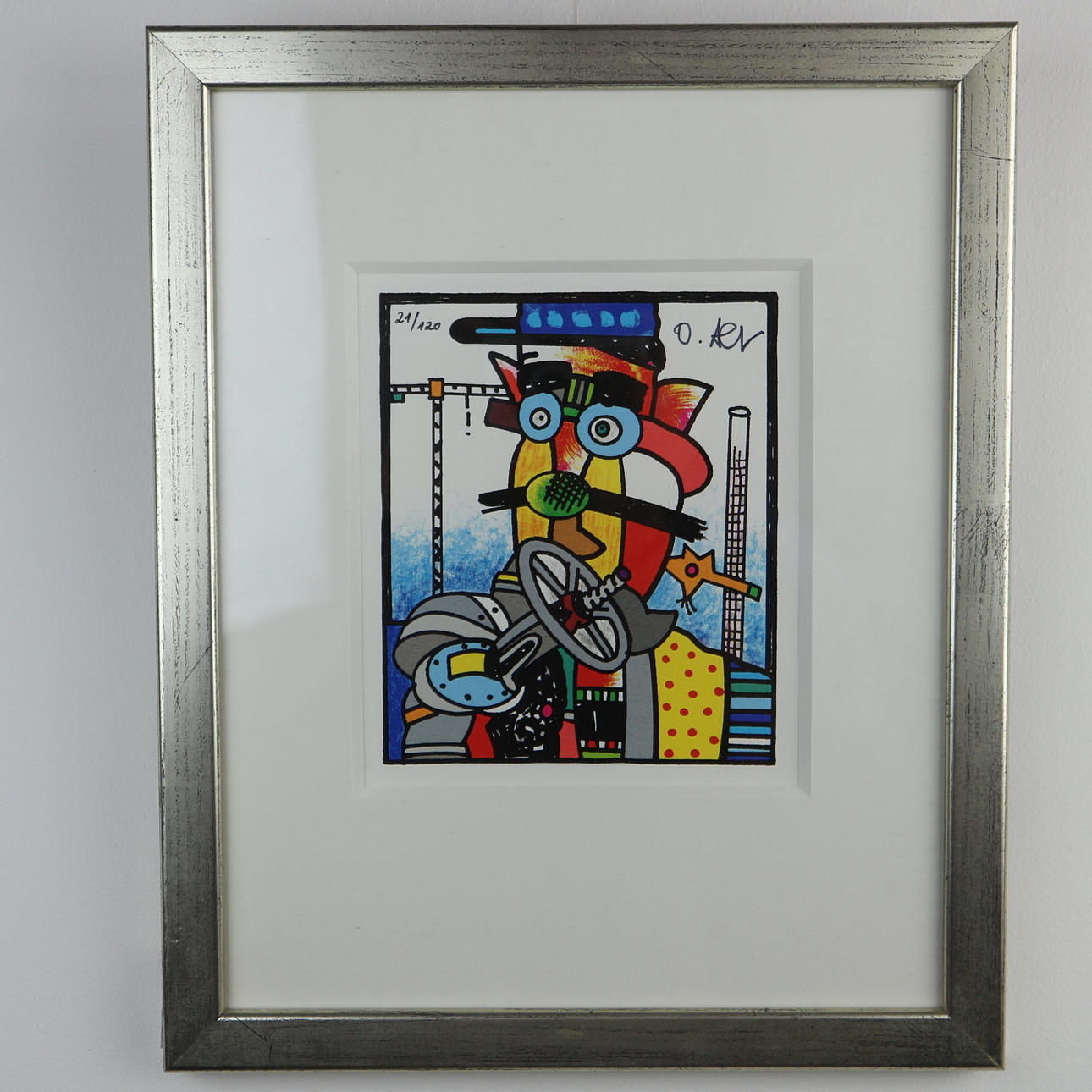 Eine Farblithographie von Otmar Alt, gerahmt, signiert, nummeriert: 21/120. Maße: 16 x 13,6 cm.