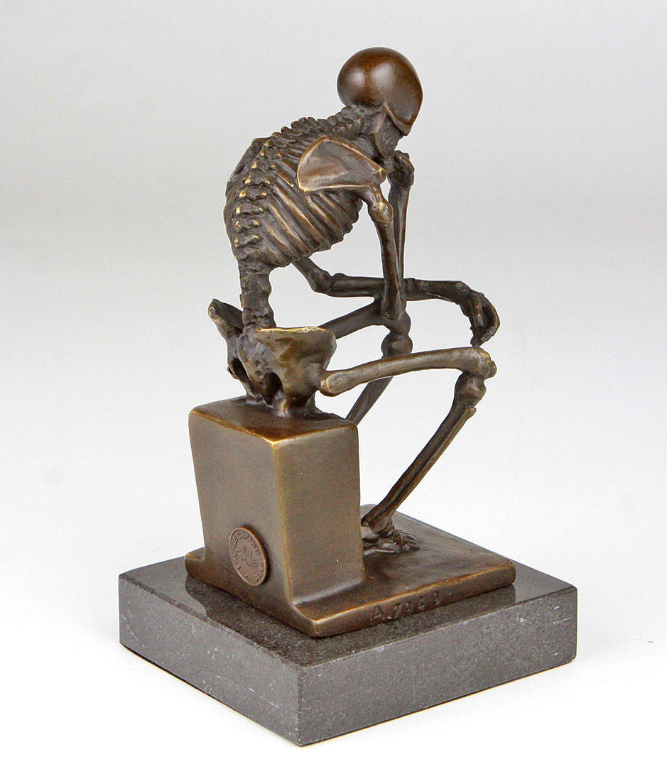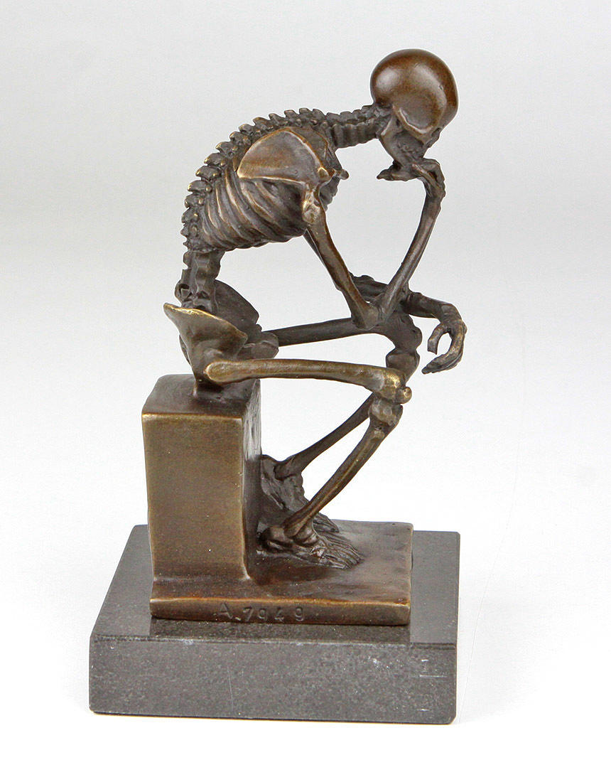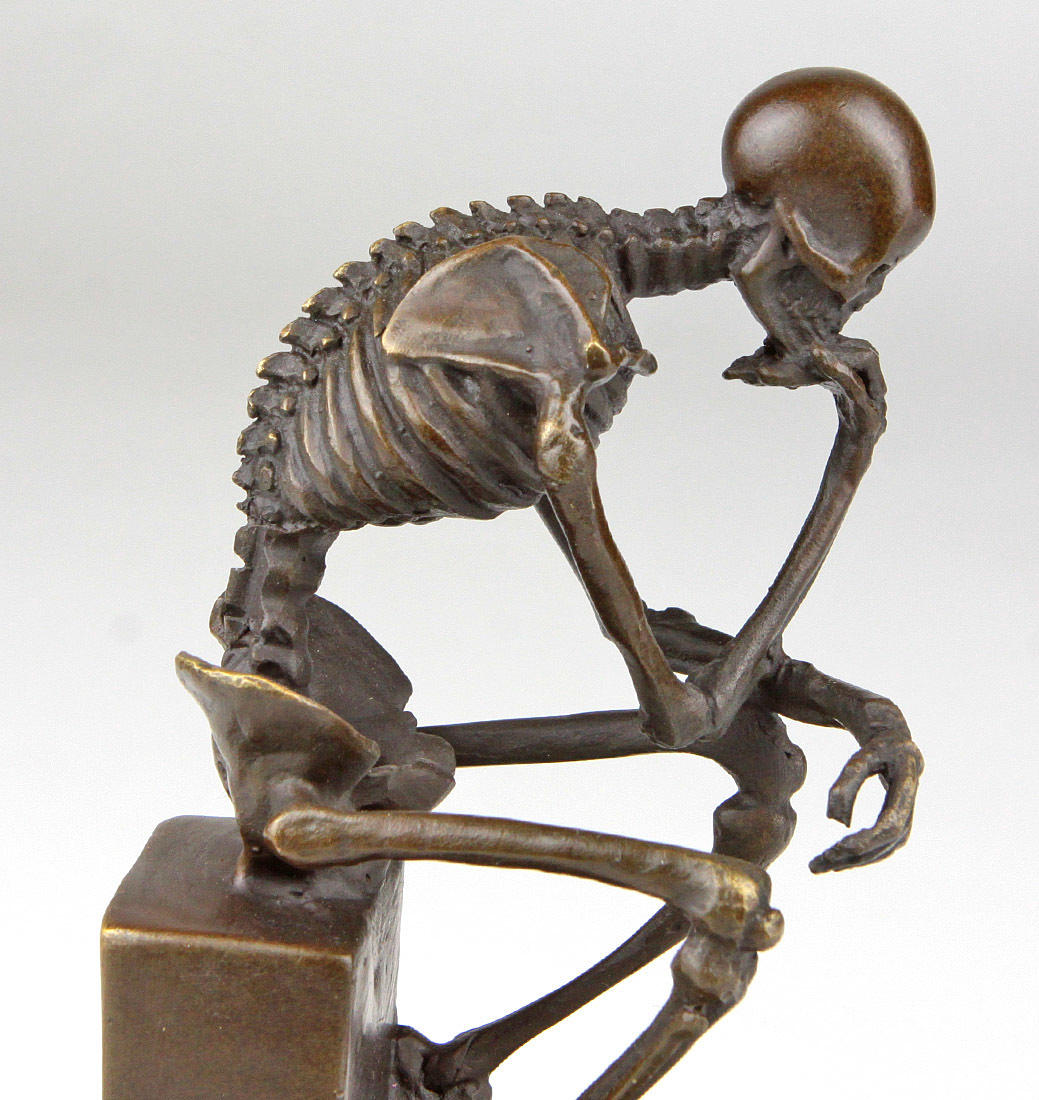 BRONZE SKULPTUR, DER DENKER, SKELETT.