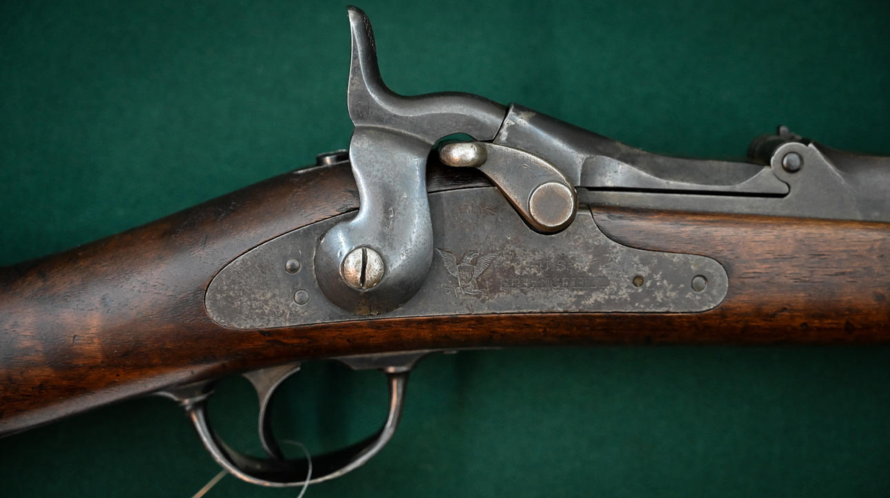 Amerikanisches Einzelschussgewehr Fabrikat Springfield mod.1873 Falltürkarabiner. Kaliber 45/70. Tel. Nr. 377262.
