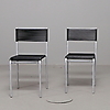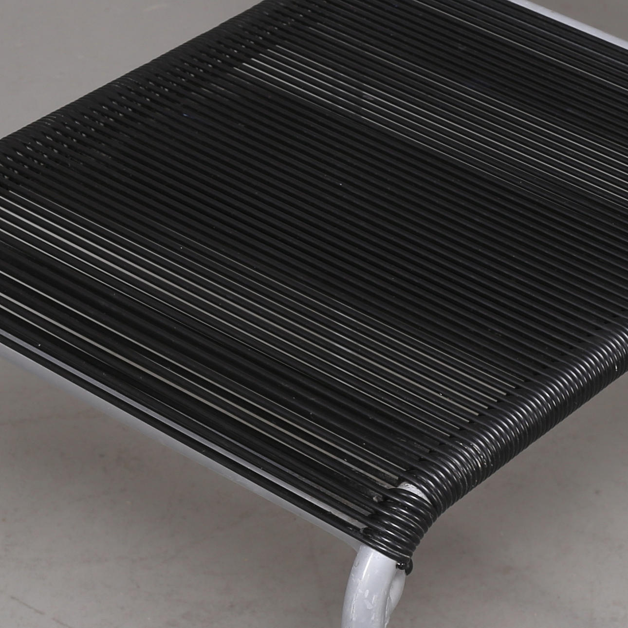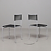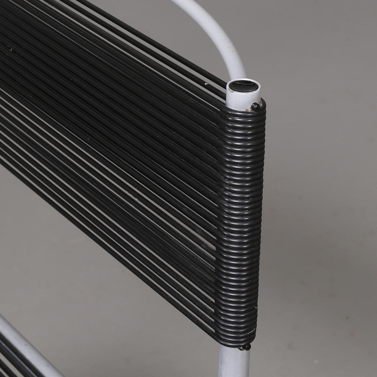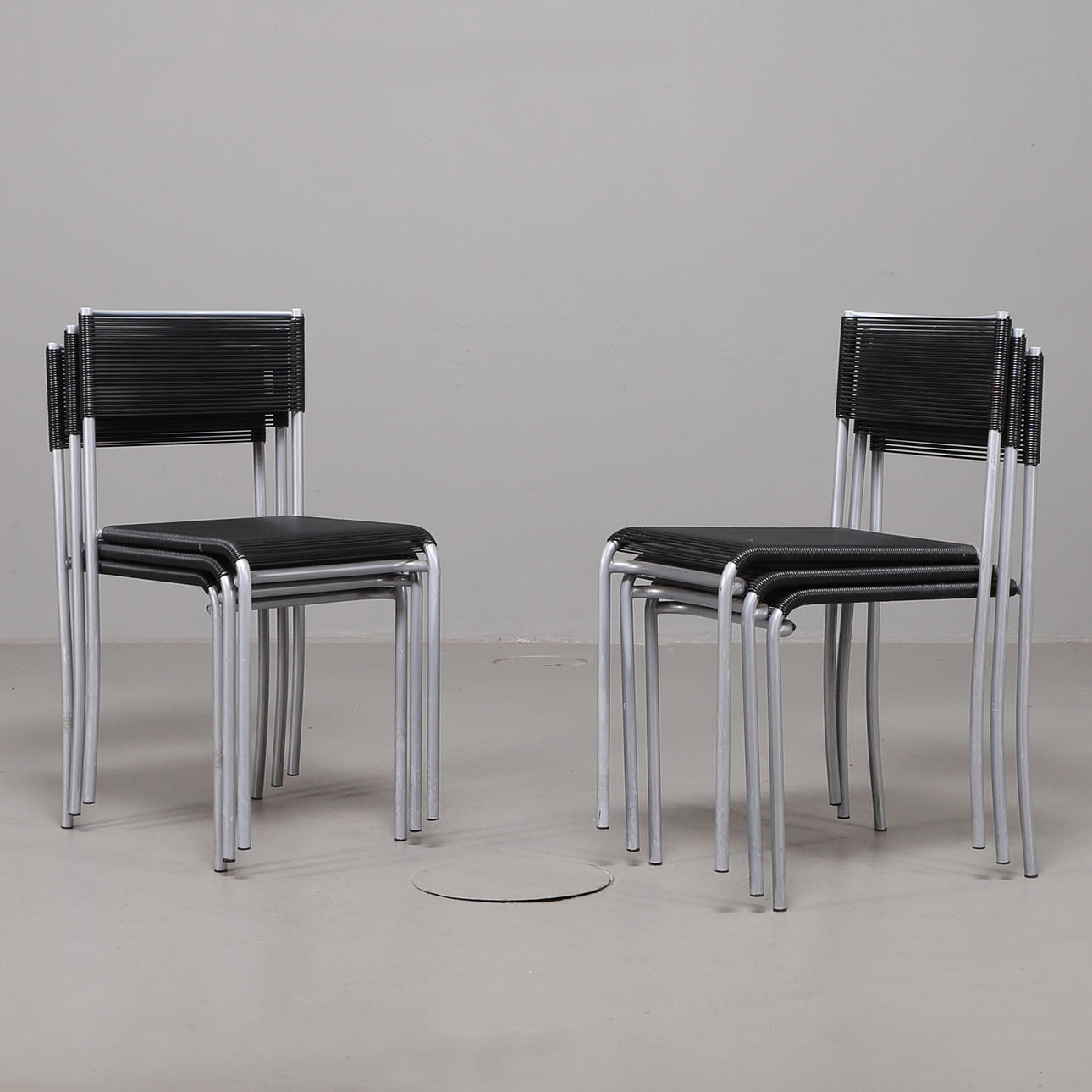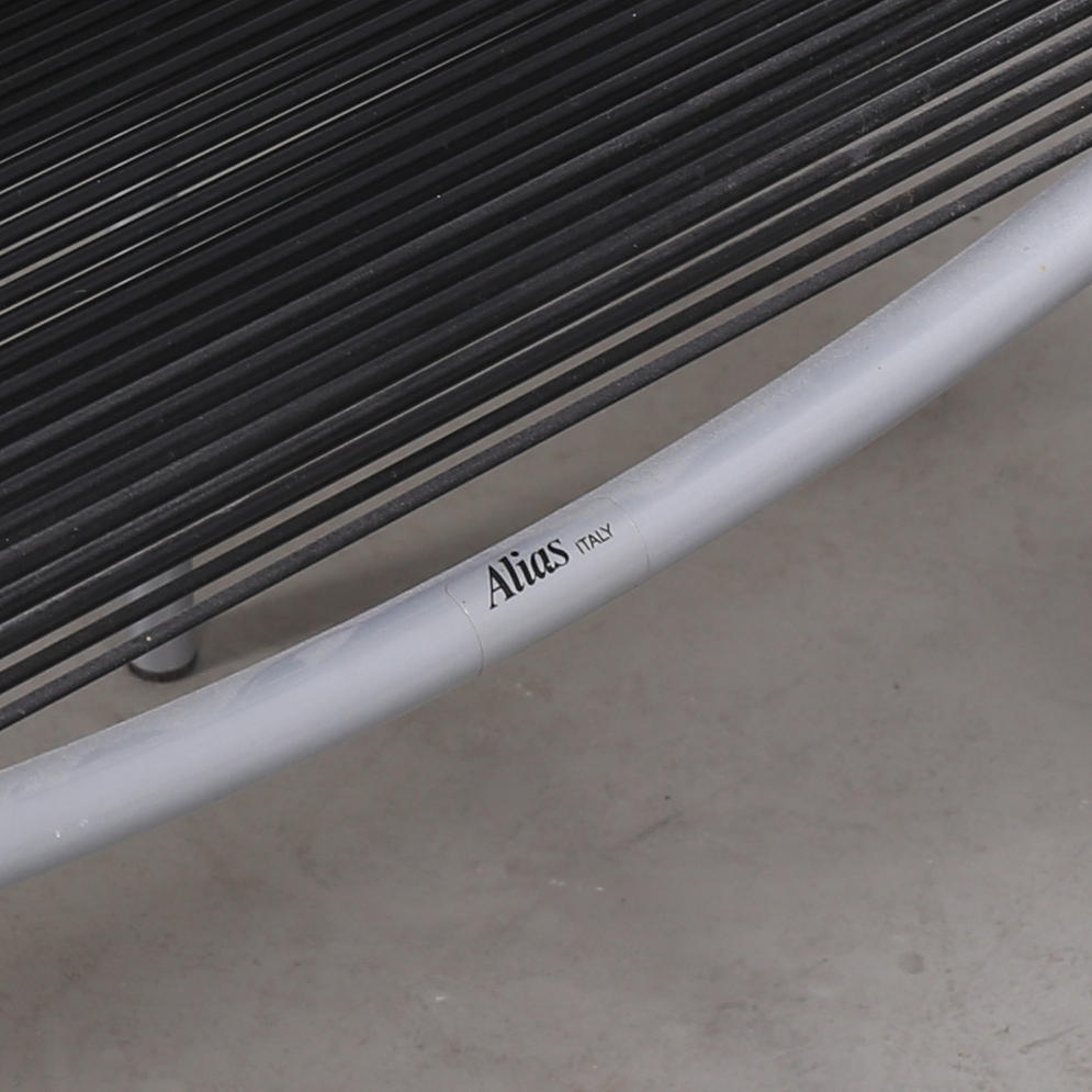 6 Stühle Modell Spaghetti Gemini 100 entworfen von Giandomenico Belotti für Alias, Italien. Gestell aus lackiertem Stahl, Sitz und Rückenlehne mit PVC bespannt, beschriftet mit Alias Italy. Stapelbar.
