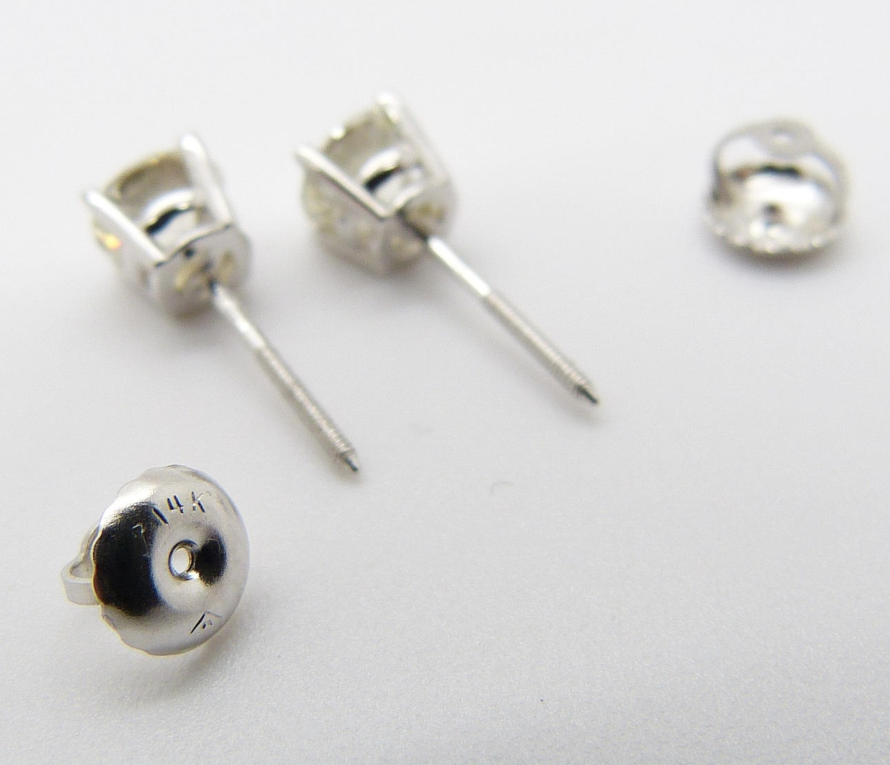 Ein Paar Solitär-Ohrstecker aus 18 Karat Weißgold mit Schraubverschluss, besetzt mit Diamanten von 1,08 Karat.