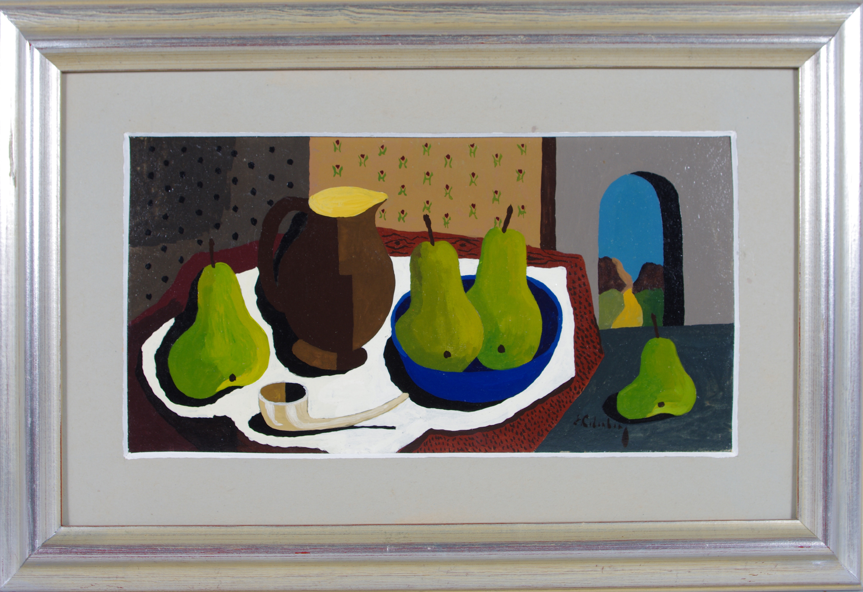 112132. ERIK CEDERBERG. Stilleben mit Birne und Pfeife, Tempera.