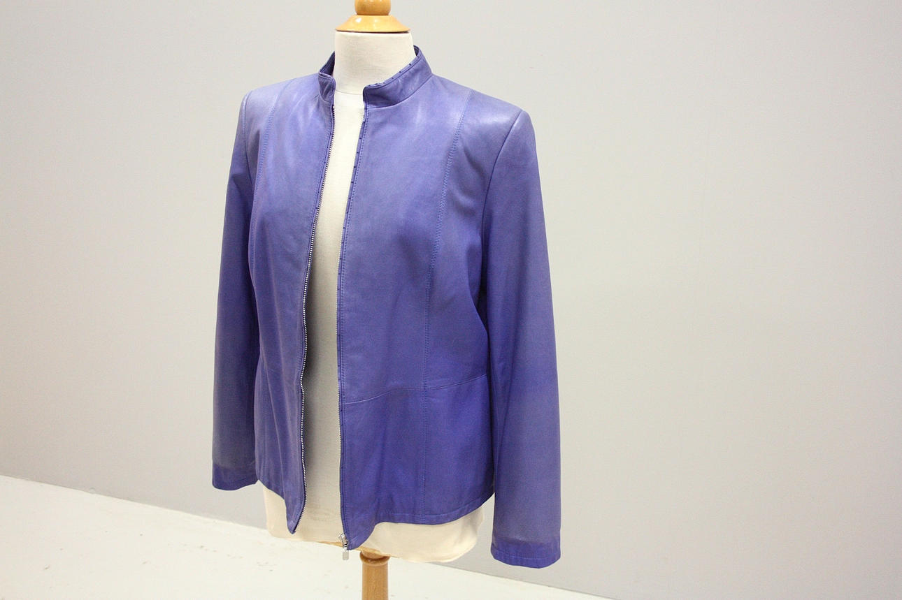 Brustumfang 100 cm Länge 65 cm Lila Leder, violett-lila Innenfutter, Reißverschluss.