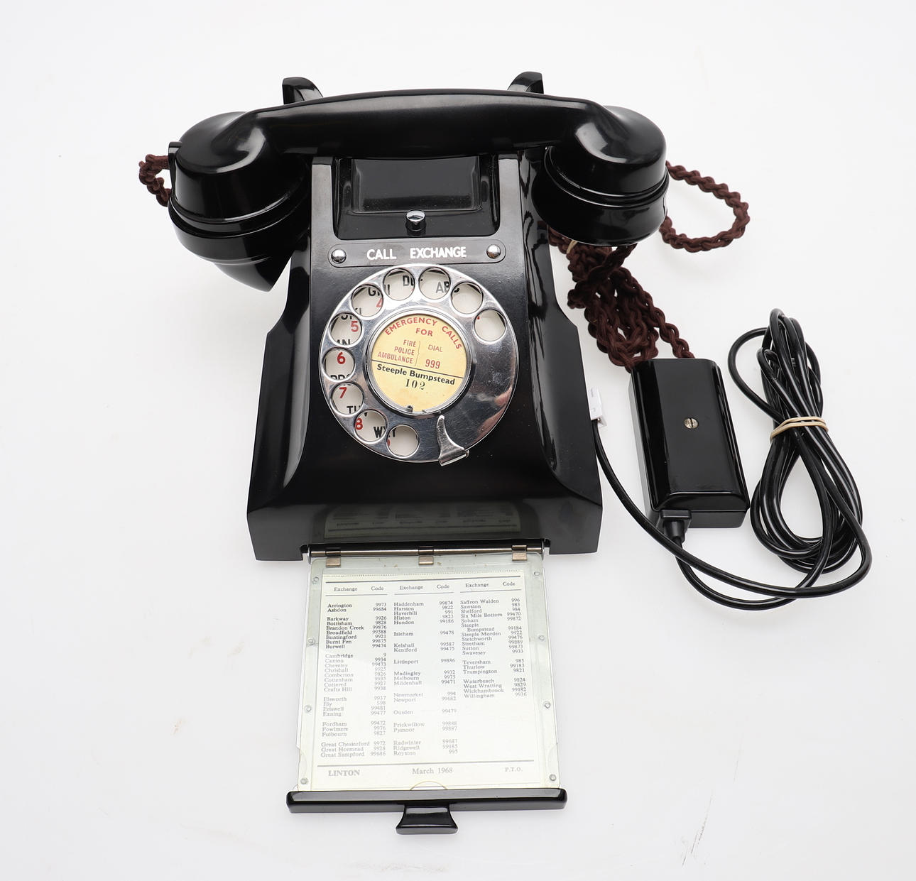 Datiert 1958 Mit Anruf-/Vermittlungstaste, alphanumerischem Zifferblatt und Schublade darunter mit einem Verzeichnis von 1968.