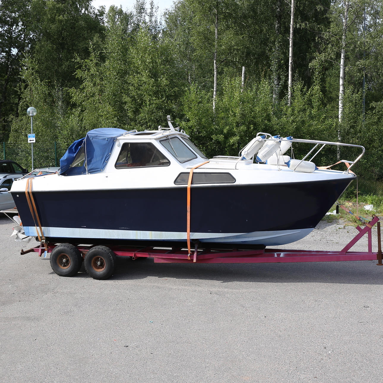 Bewertung des Bootes durch die Versicherungsgesellschaft Svedea, Aug. 2019 Boot, Motor und Trailer werden im Ist-Zustand verkauft, eigene Bewertung SEK 15-20.000 Bootstrailer 30 Motor: Volvo Penta B30 Ungefähre Länge 6,3 m ohne Dock Niedrigstes akzeptiertes Gebot SEK 30.000.
