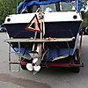1126258. MOTORBOOT mit ANHÄNGER, Kunststoff, wohl 70er Jahre.