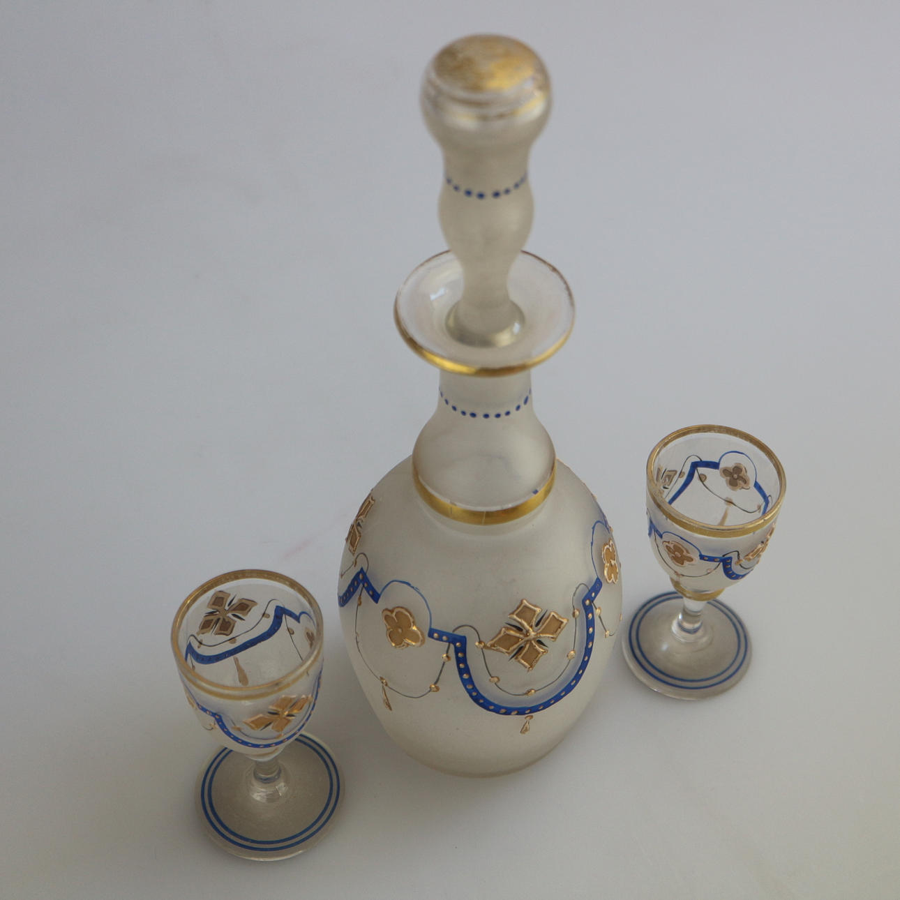Likeurservice, Frankreich, 1870, Opalinglas, mit Emaille Malerei.