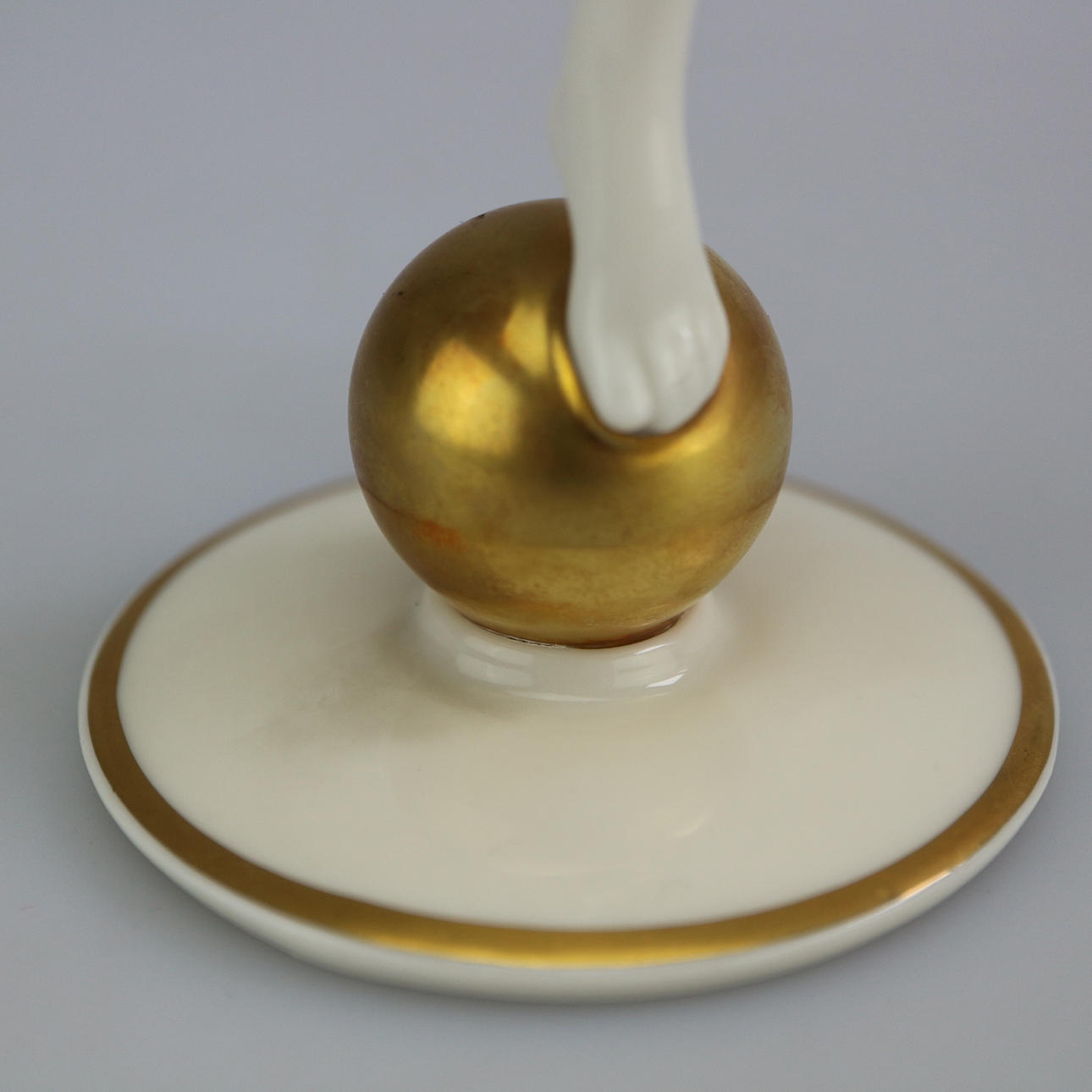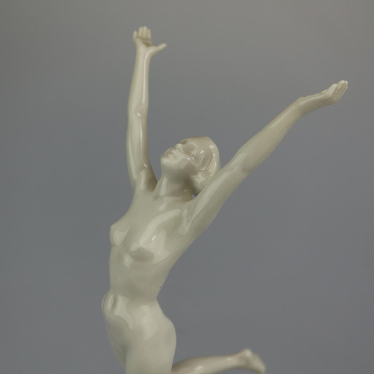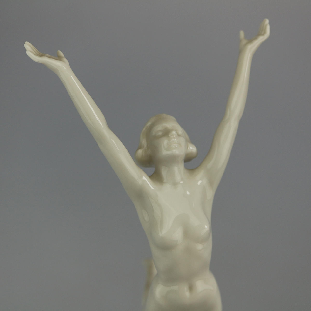 Hutschenreuther Offered is a nice sculpture produced by the firm Porzellanfabrik Lorenz Hutschenreuther (in Selb, Germany) after a design from1938 by the German sculptor Karl Tutter (1883-1969). The sculpture is known under the name ‘Sonnenkind’ and depicts a nude dancer, balancing on a gold coloured ball.