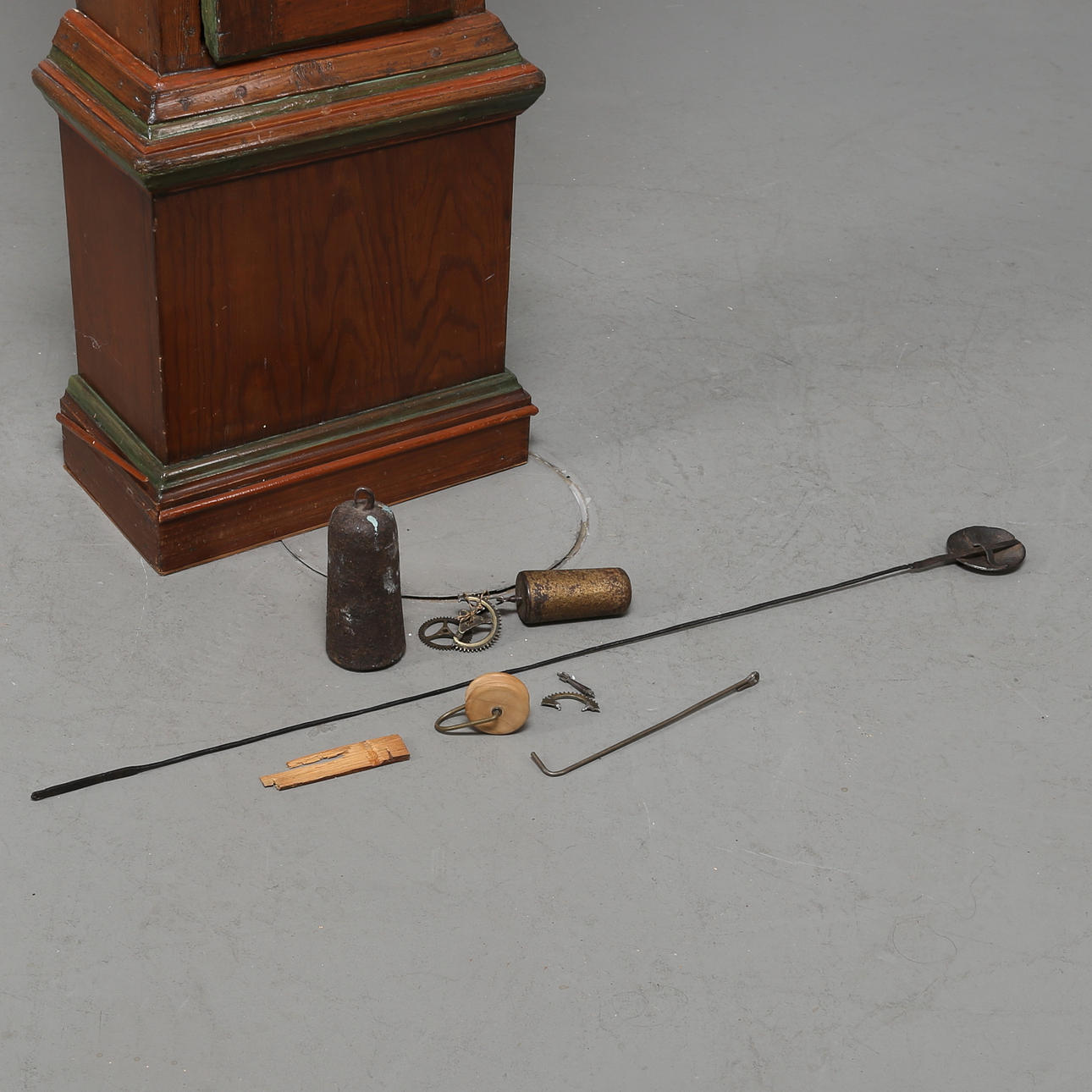 Standuhr gemarkt FDJ 1777, mit roter und grüner Bemalung.