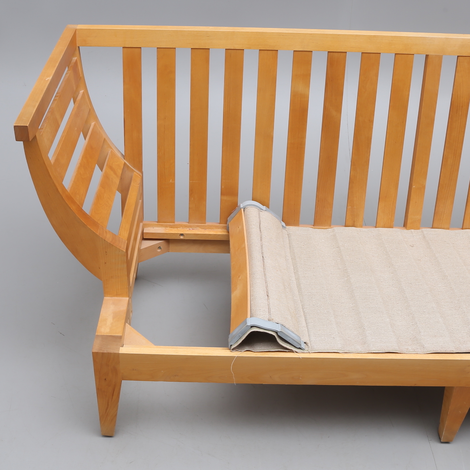 1139555. NIRVAN RICHTER. SOFA, "HOLZSOFA", NORTH GAVEL.